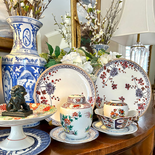 Chic hand painted Imari porcelain chinoiserie Ginger jar vase