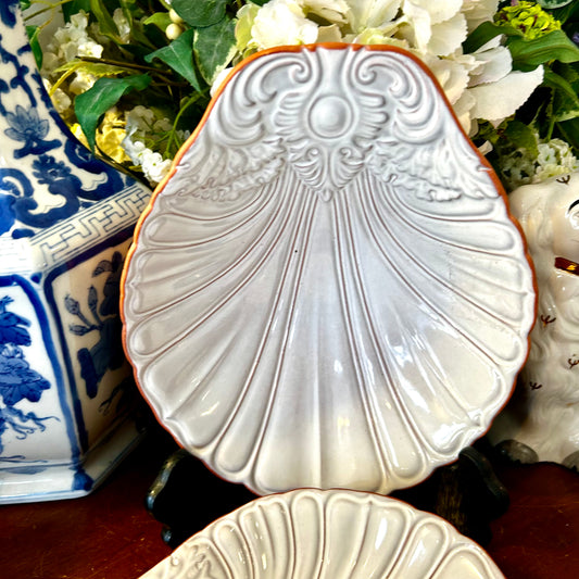 Set of two designer terra cotta clam shell bowls by Loneoak & Co.