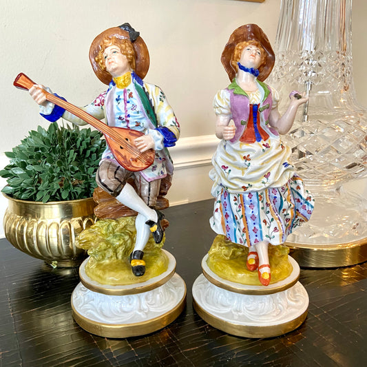 Lovely Set of 2 colorful vintage porcelain statue figurines