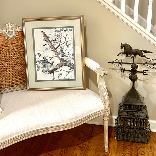 lovely vintage Audubon inspired bird and botanicals color print wall art by artist Basil