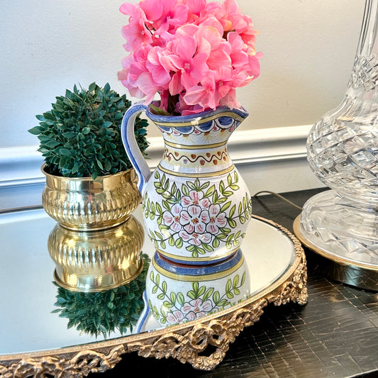 Vintage designer Mariposa basket weave and botanical large spring serving bowl