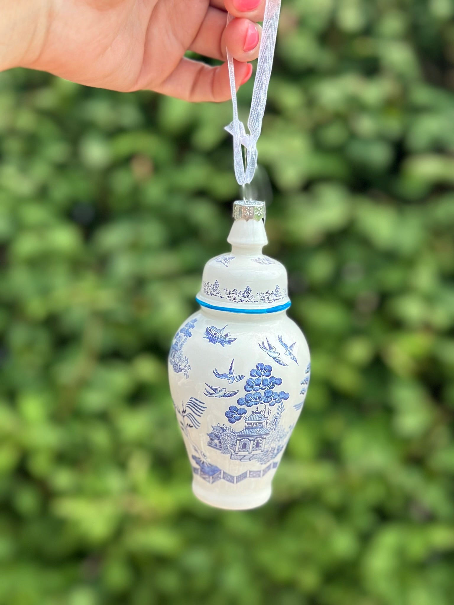 Add a touch of elegance to your holiday décor with our beautiful 5" Glass ginger jar Ornament. Stunning colors will instantly elevate your Christmas tree or home decorations. Crafted with care, this ornament is sure to bring joy and charm to your holiday season!