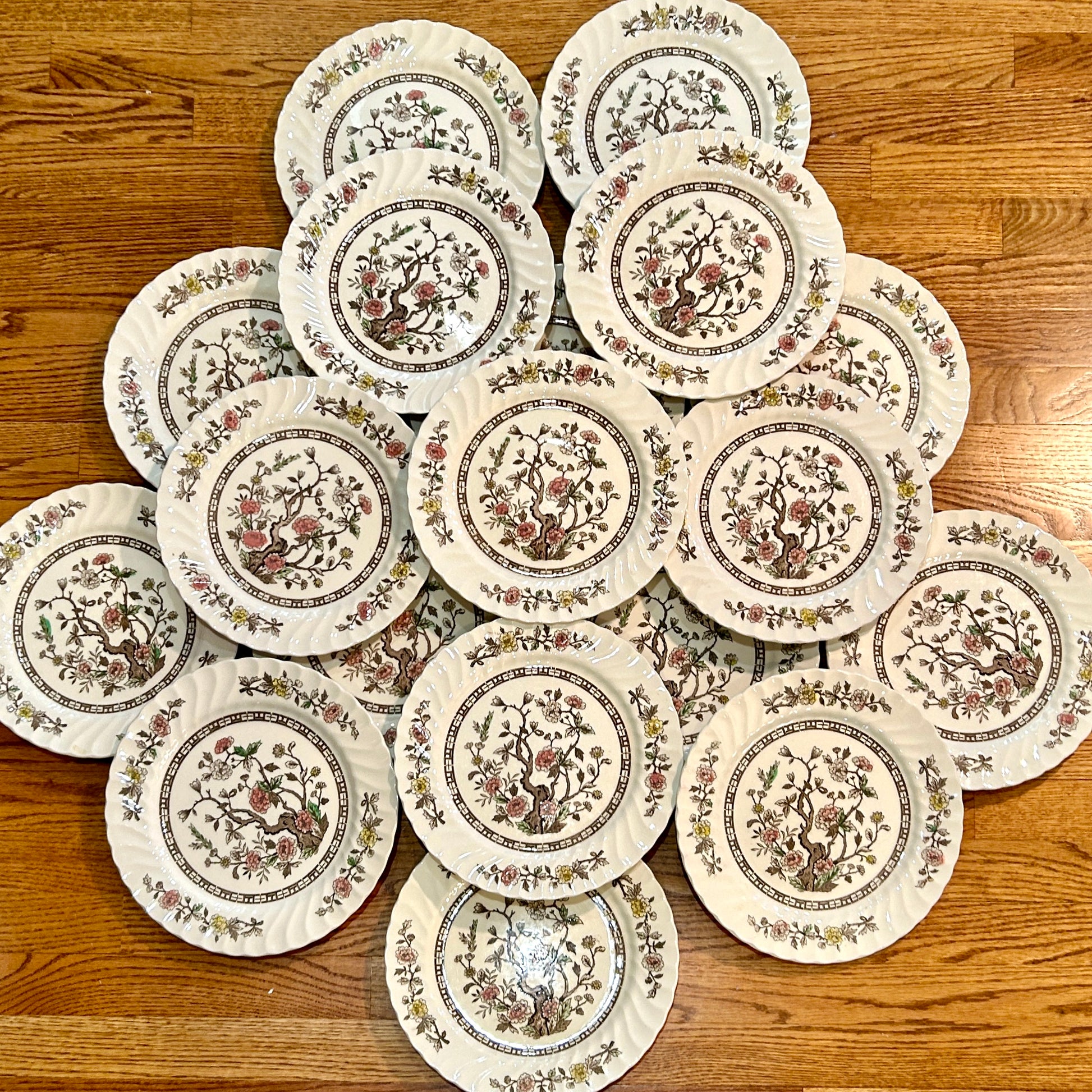 Set of 18 vintage Kashmir tree stunning scalloped dinner plates 10d