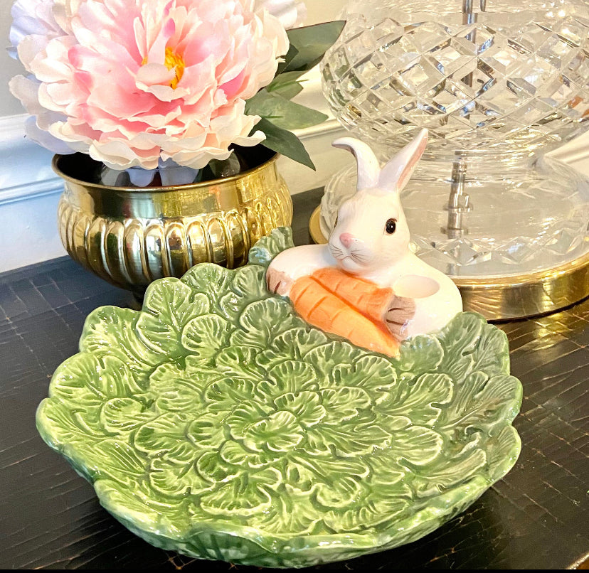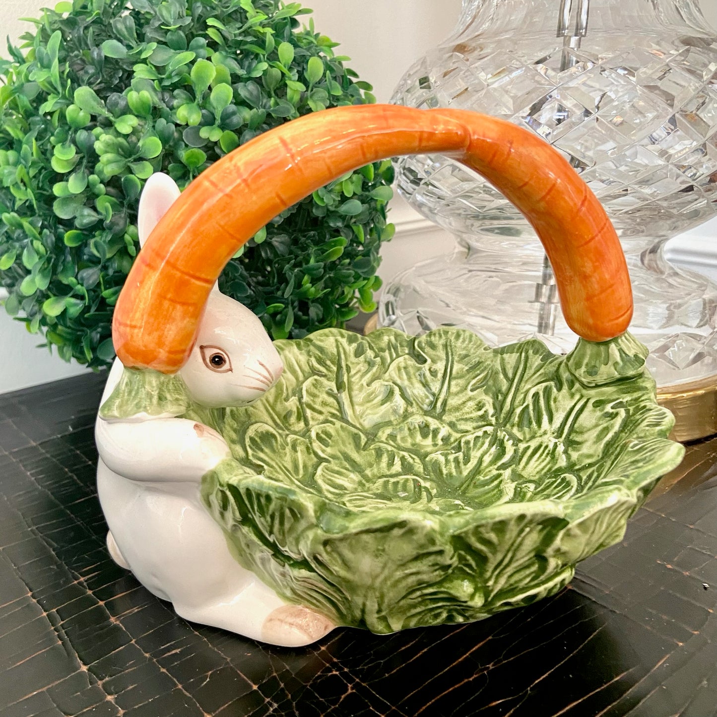 - Set of 2 sweet majolica style bunny rabbit with carrots and cabbage dishes