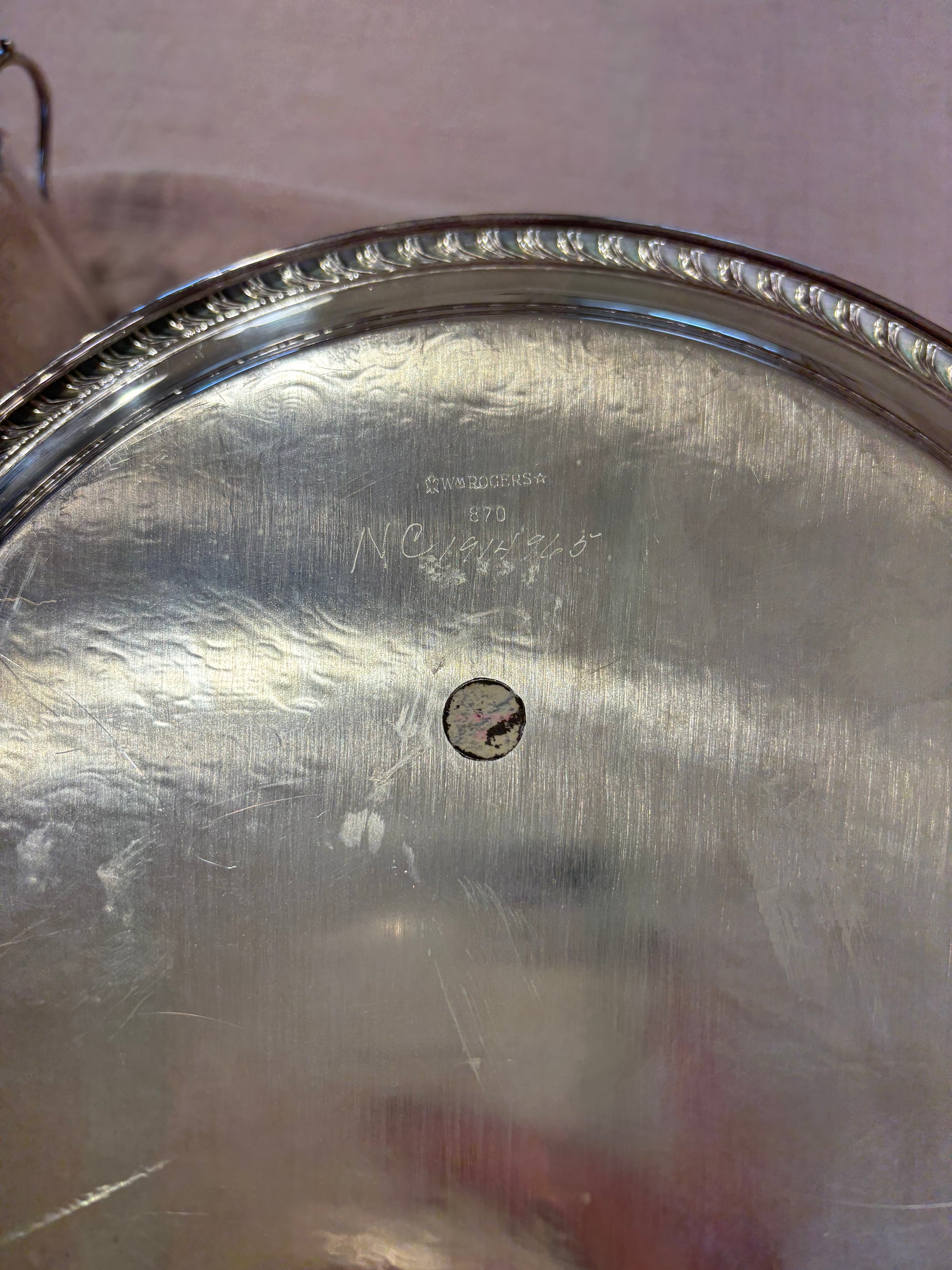 Tray is silverplated WM ROGERS and will be included. Has some surface scratches.