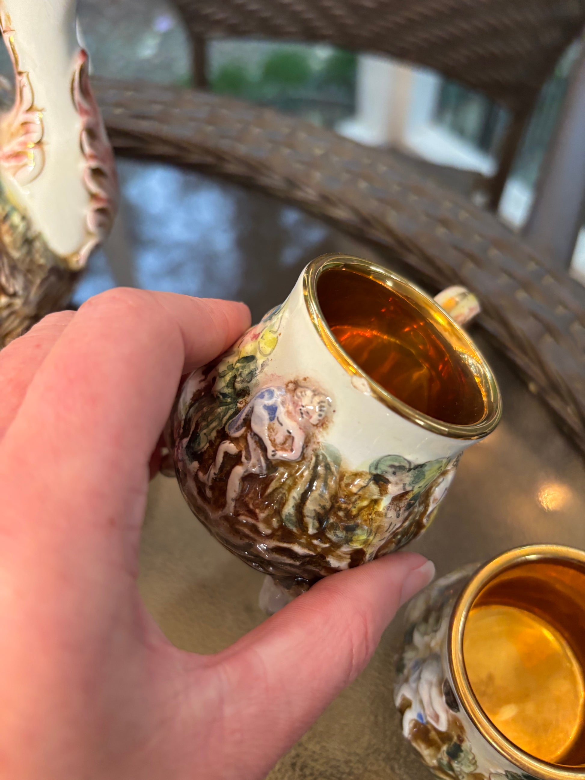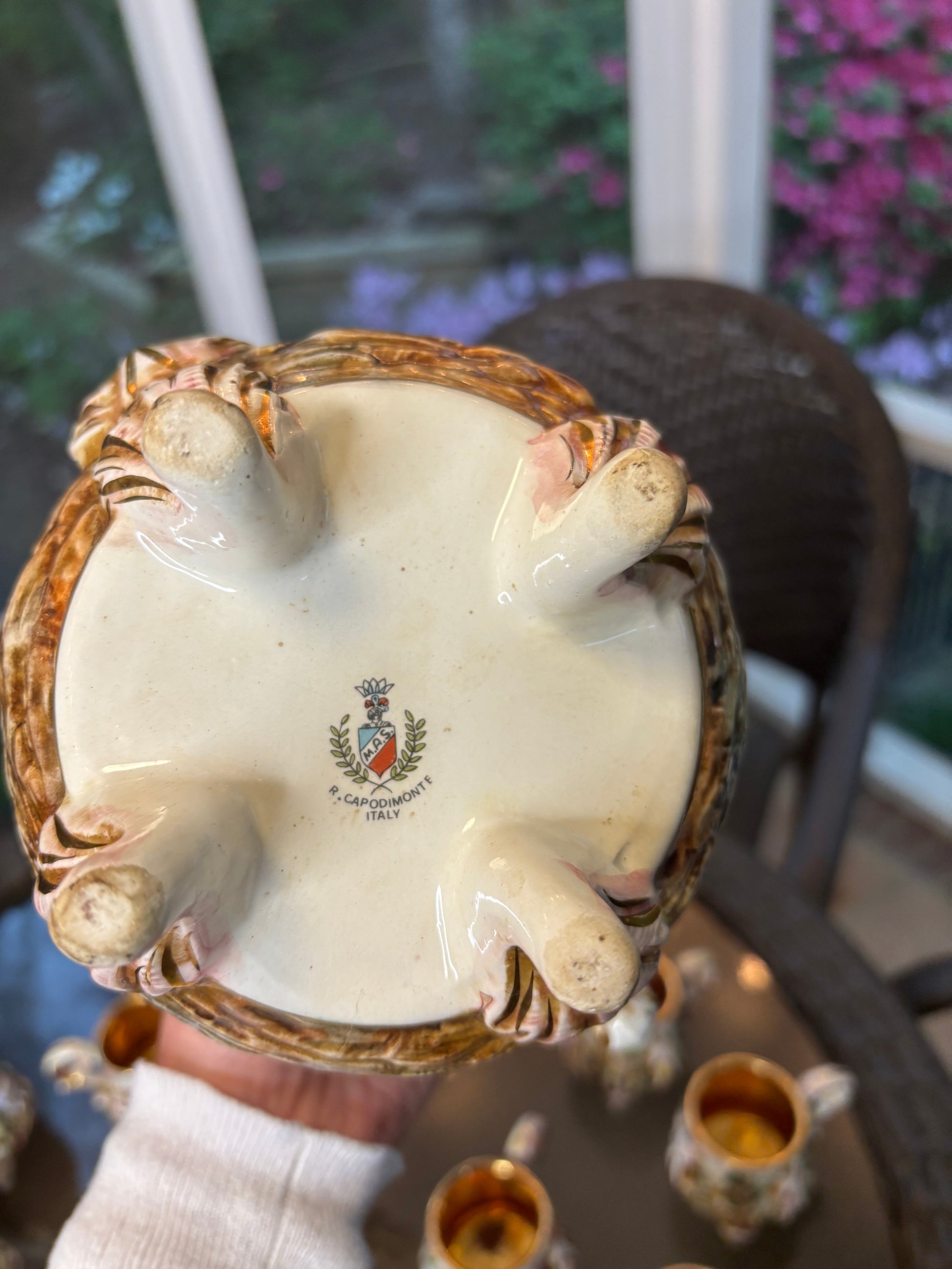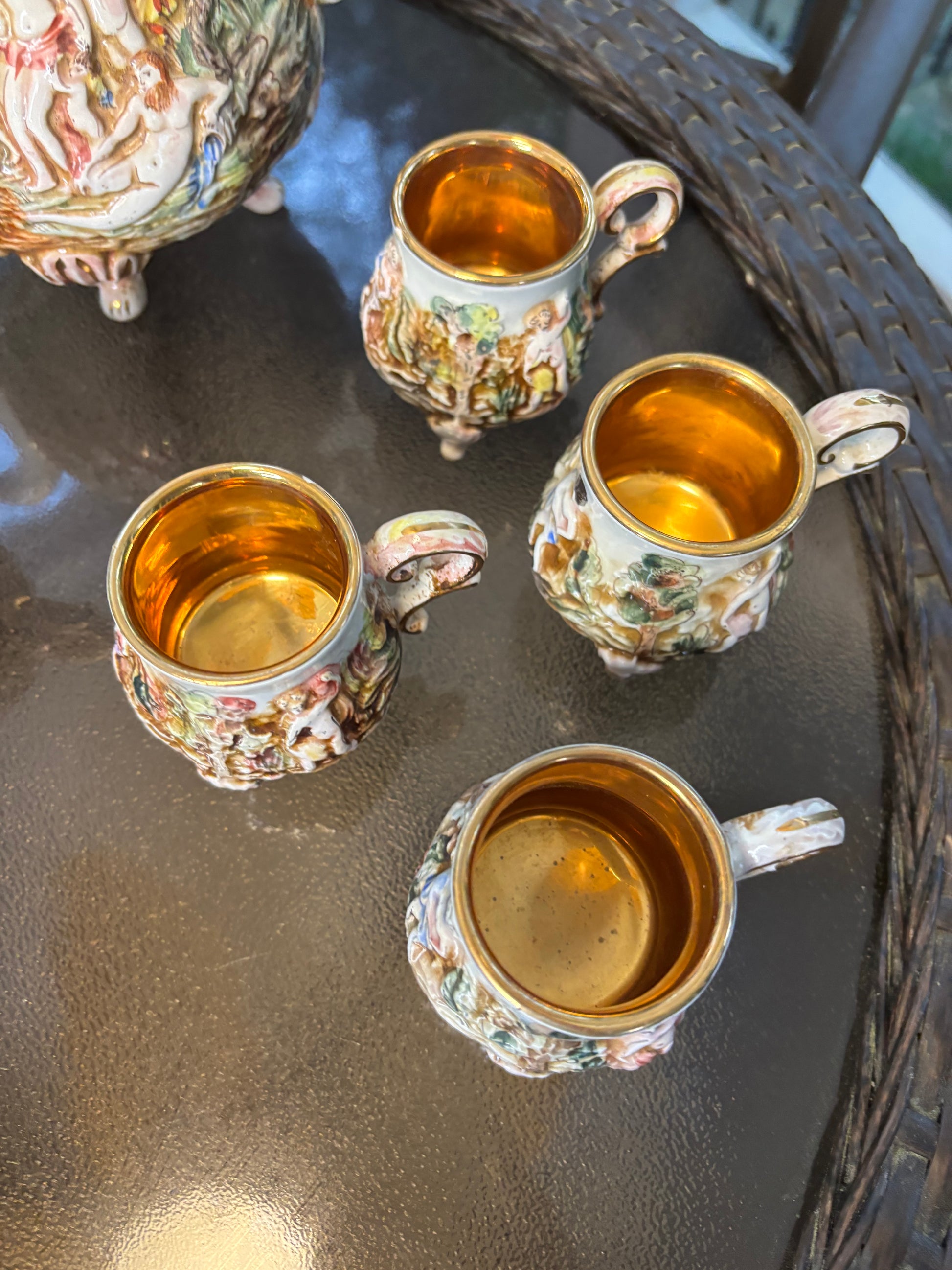 Stunning Italian Capodimonte tea set! Includes tea pot and 9 cups! In beautiful condition with a few small chips on rims of a few cups. All marked Capodimonte! Perfect for a Spring tea party!