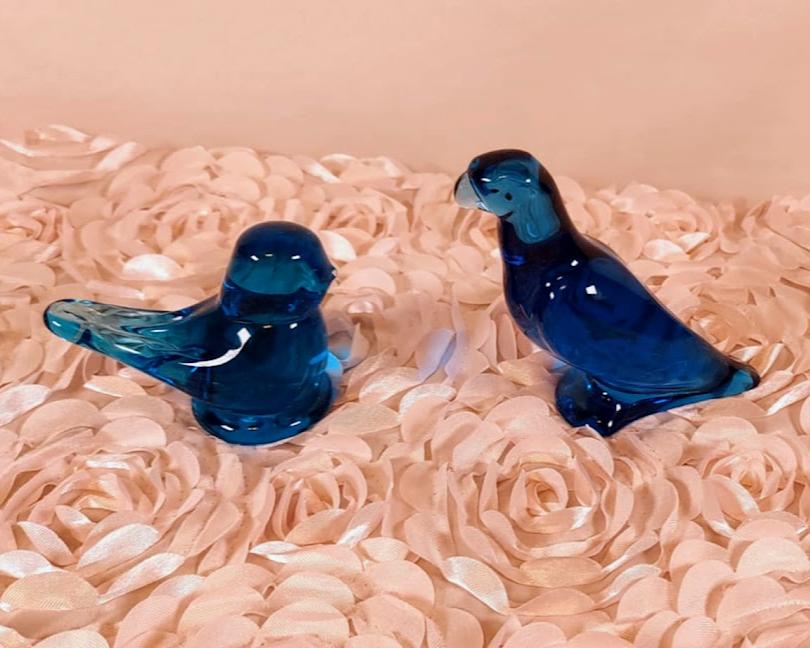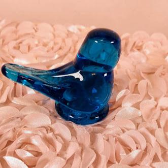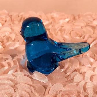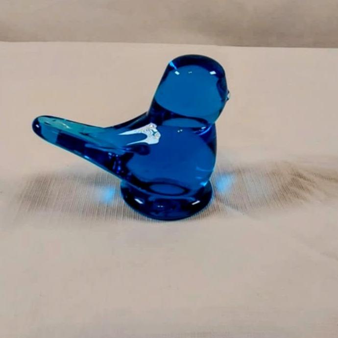 This vintage blue bird of happiness is a beautiful addition to any collection. In excellent condition, this small glass bird measures 2 1/2" tall and 4" from tail to beak. The cobalt blue color adds a touch of elegance to this charming piece.