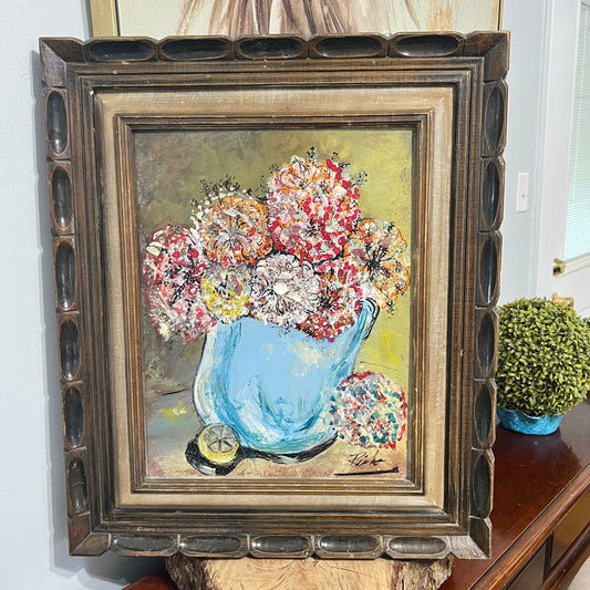 Bold abstract still life oil painting. Signed by artist Chaplin.
