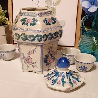 Danny's Fine Porcelain: Blue & White, 7" Tall Double Happiness, Hand Painted Tea Caddy Jar