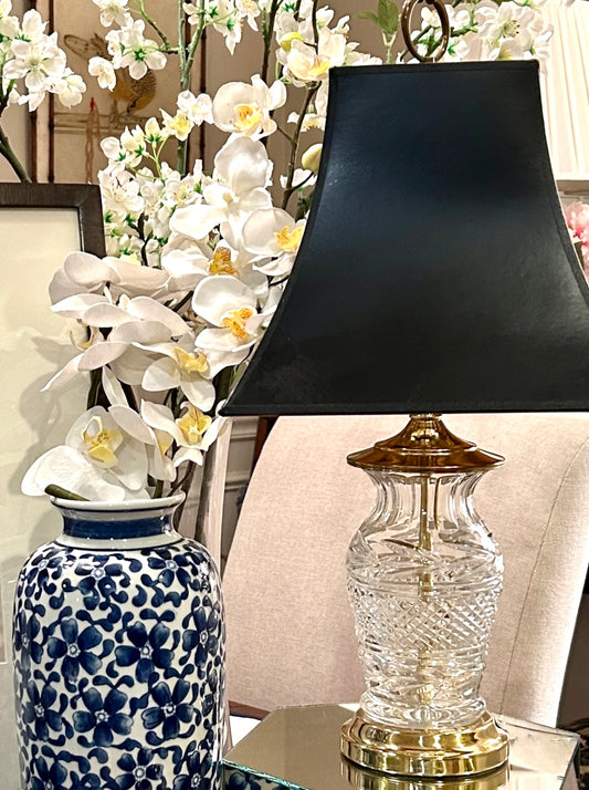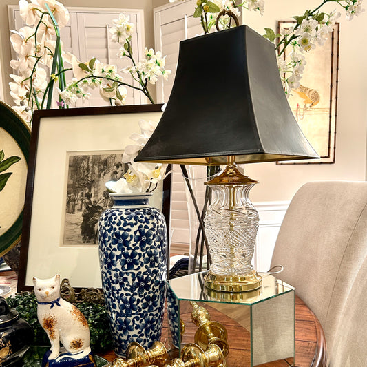 Pair of Vintage Paul Hanson Crystal & Brass Lamps | 33″ Tall - Excellent!