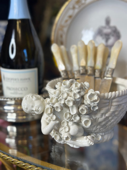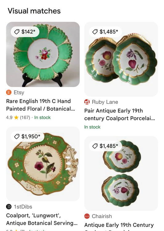 Danny's Fine Porcelain - Green & White Porcelain Pagoda Scalloped Basin, 12x8x7 - Pristine!