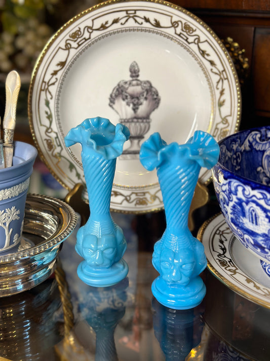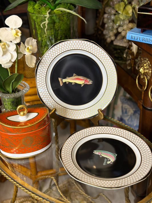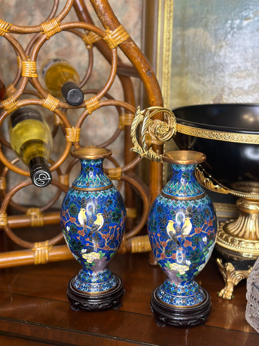 Vintage Pair of Hand-Painted Porcelain Dalmatian Dogs on Cobalt Bases (5.25”) English