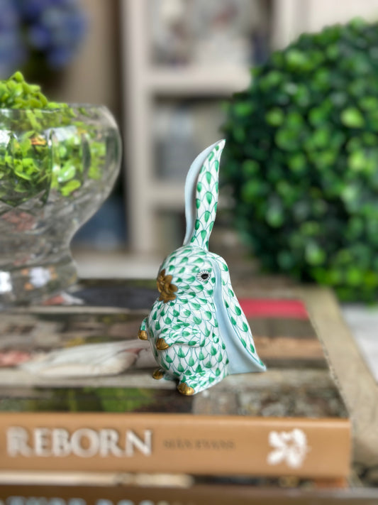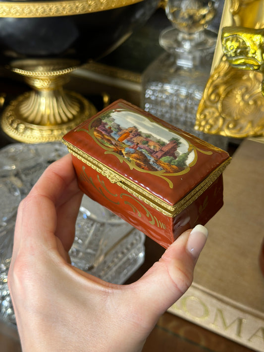 Herend Fishnet hand-painted porcelain with 24K gold: Box with Bow - 2” L × 1.75” H,