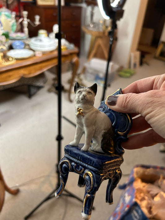 Ginori Italian Majolica Urn with Ram Handles – Hand-Painted Cobalt & Gilt, 14” Tall, Tin Glaze
