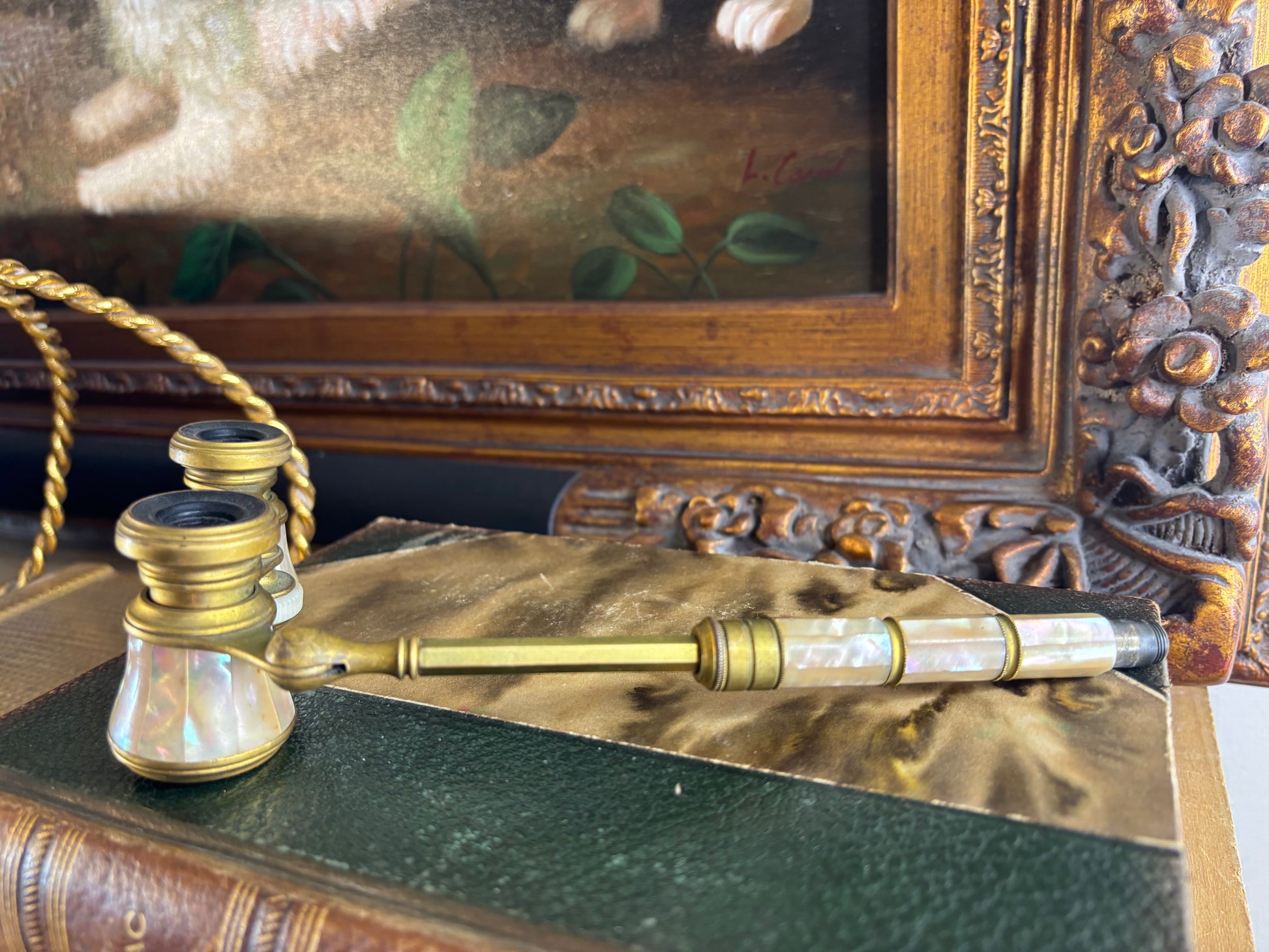 Antique French Paris Opera glasses with mother of pearl and handle! As is!