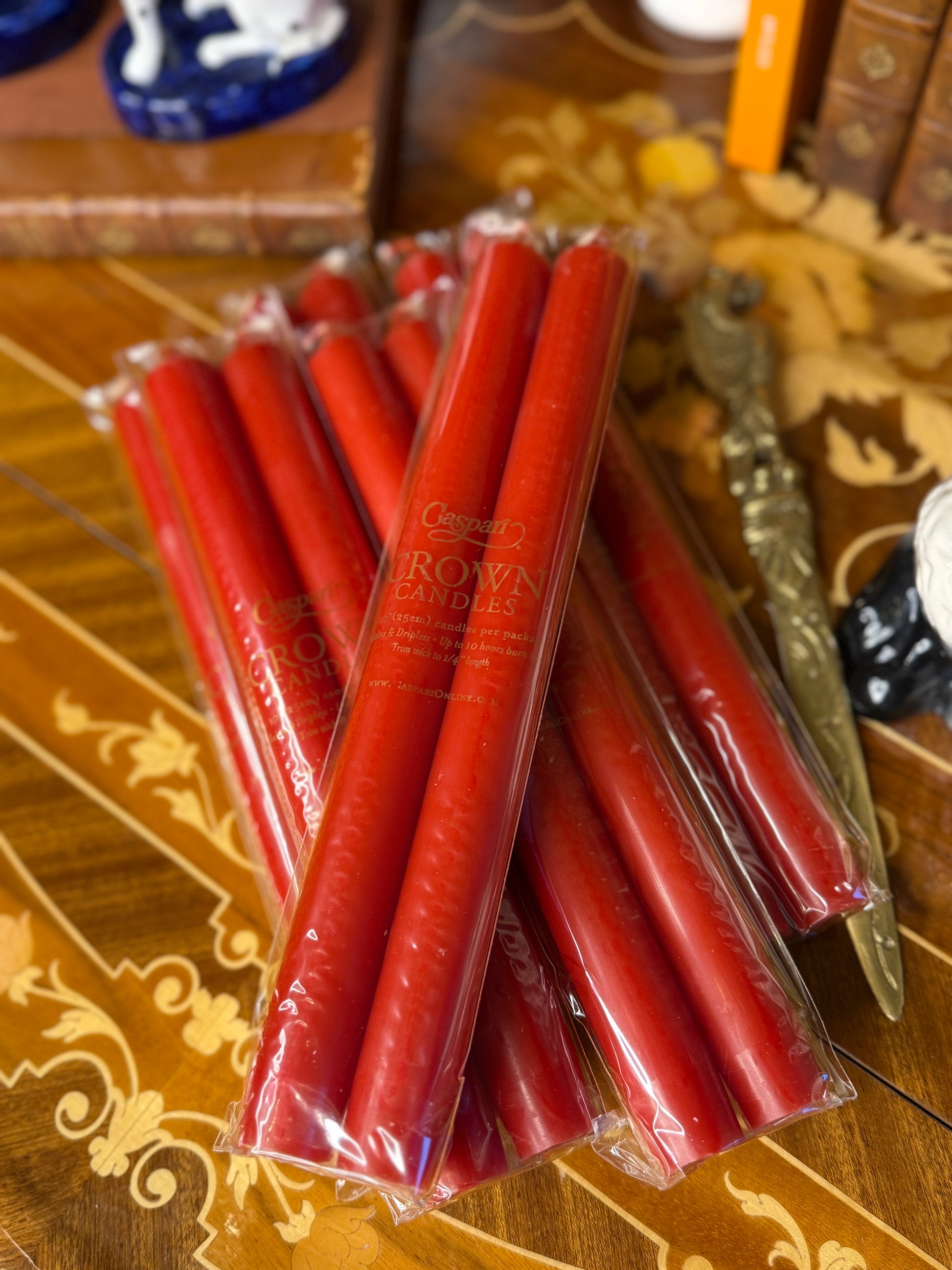 Caspari Straight Taper 10” Candles in Red - 2 Candles Per Package