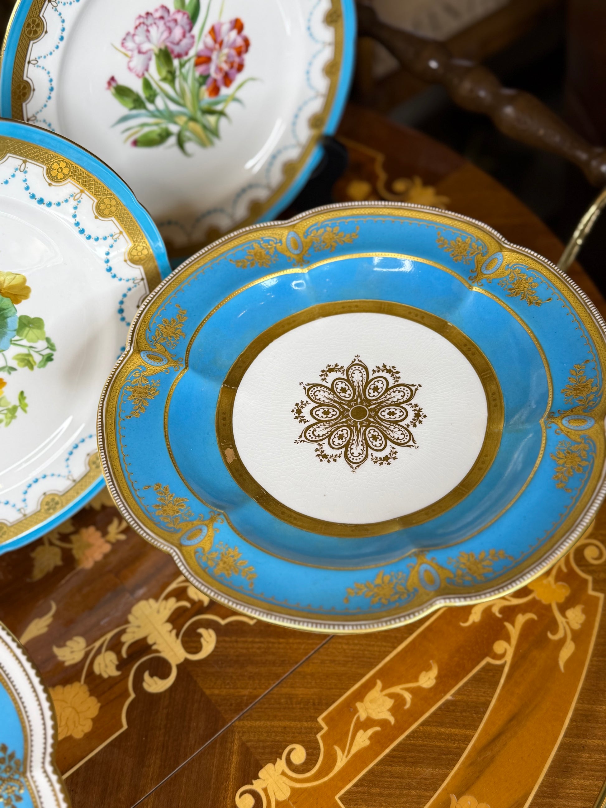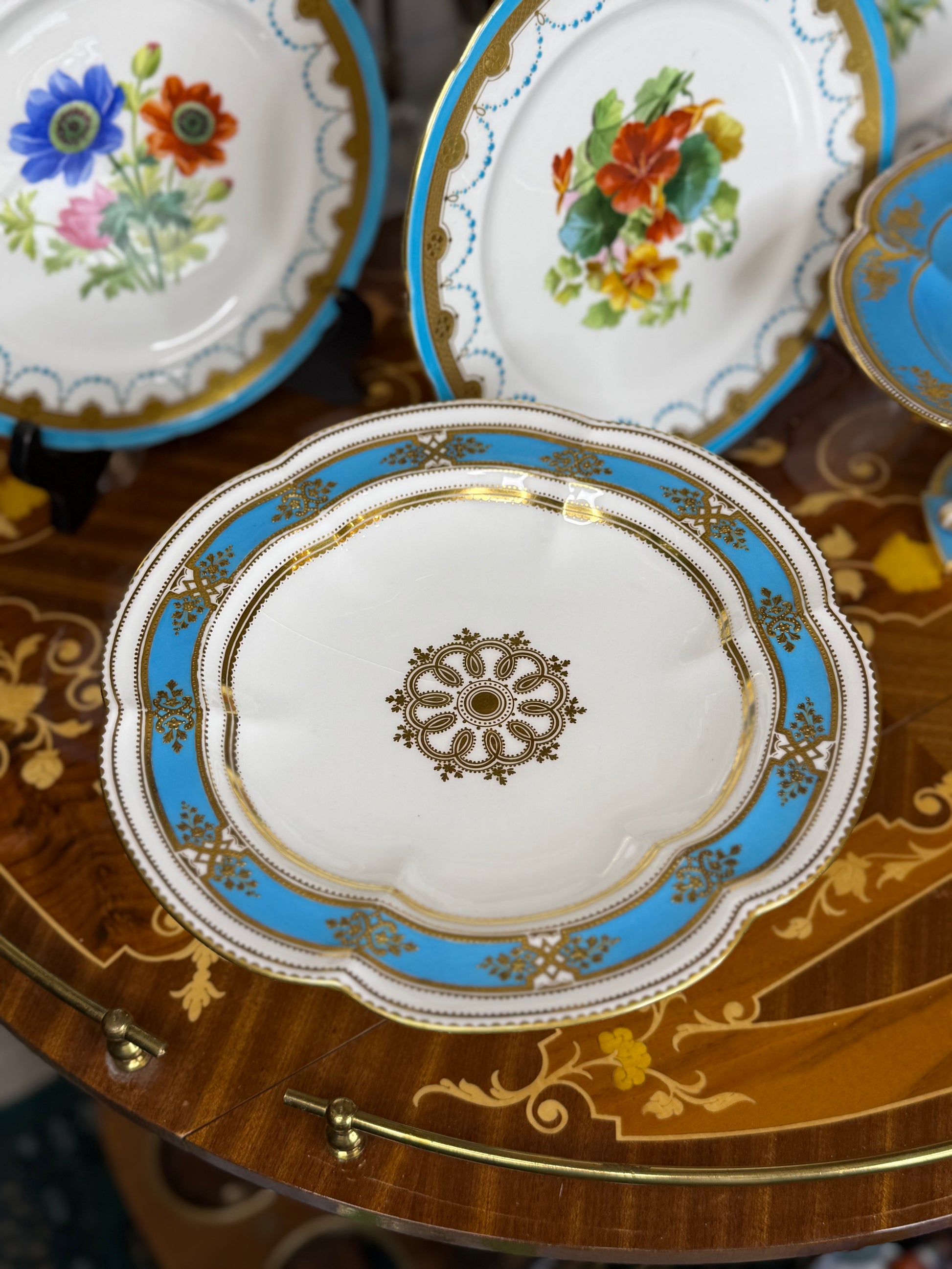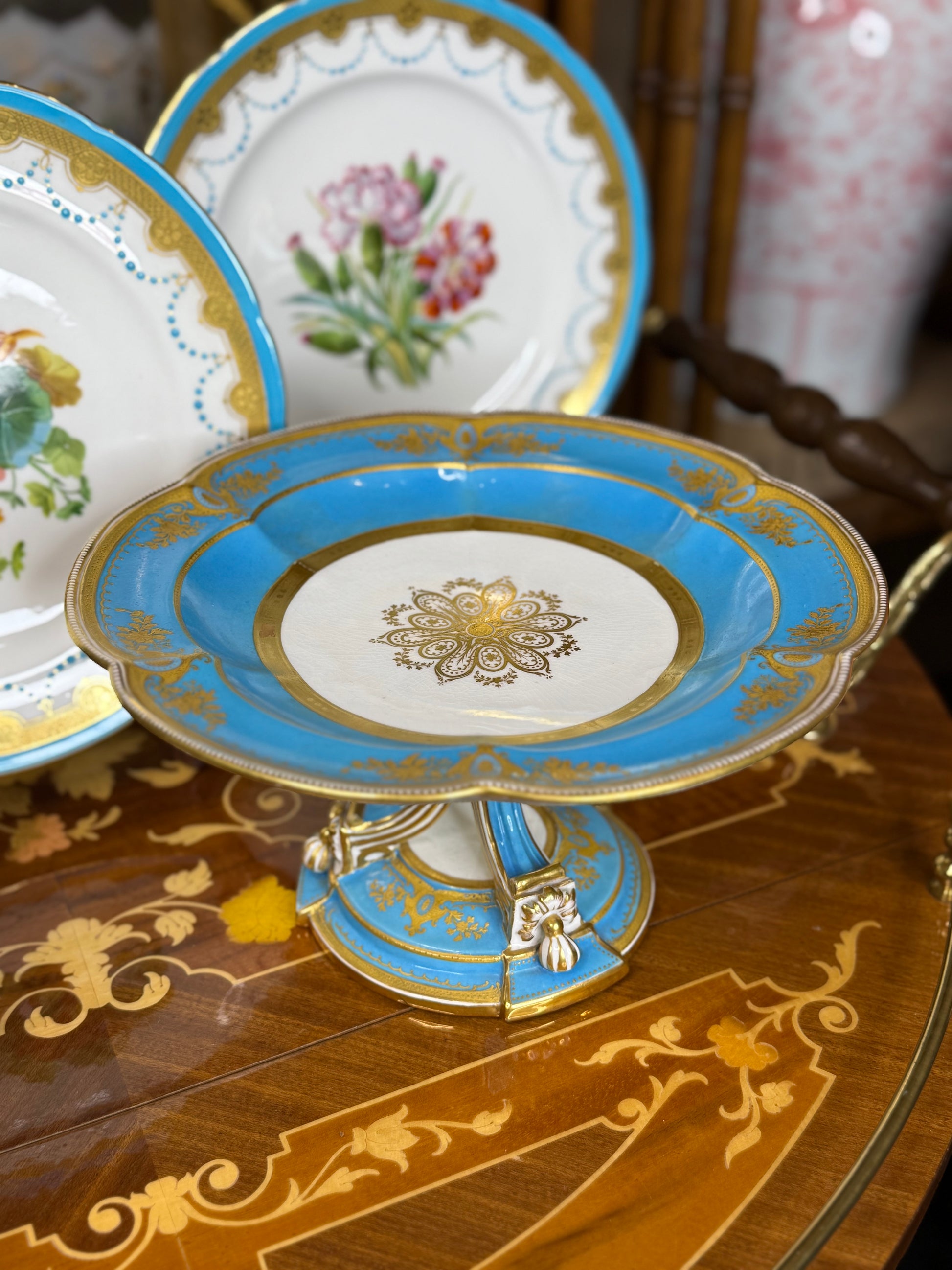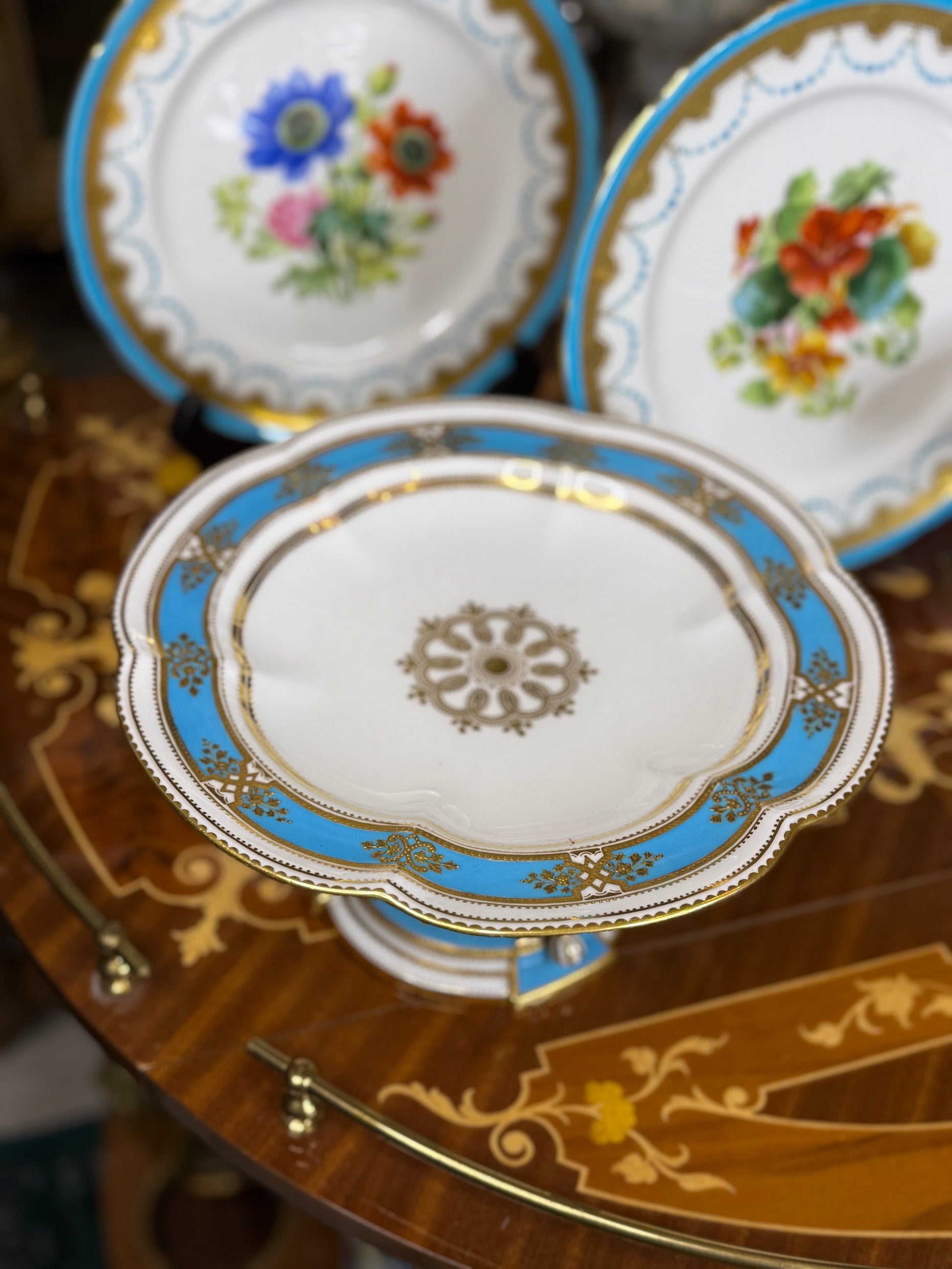 Coalport Raised Gilt Comport, c. 1850 – Turquoise & Gold, 10” Diameter (2 available)