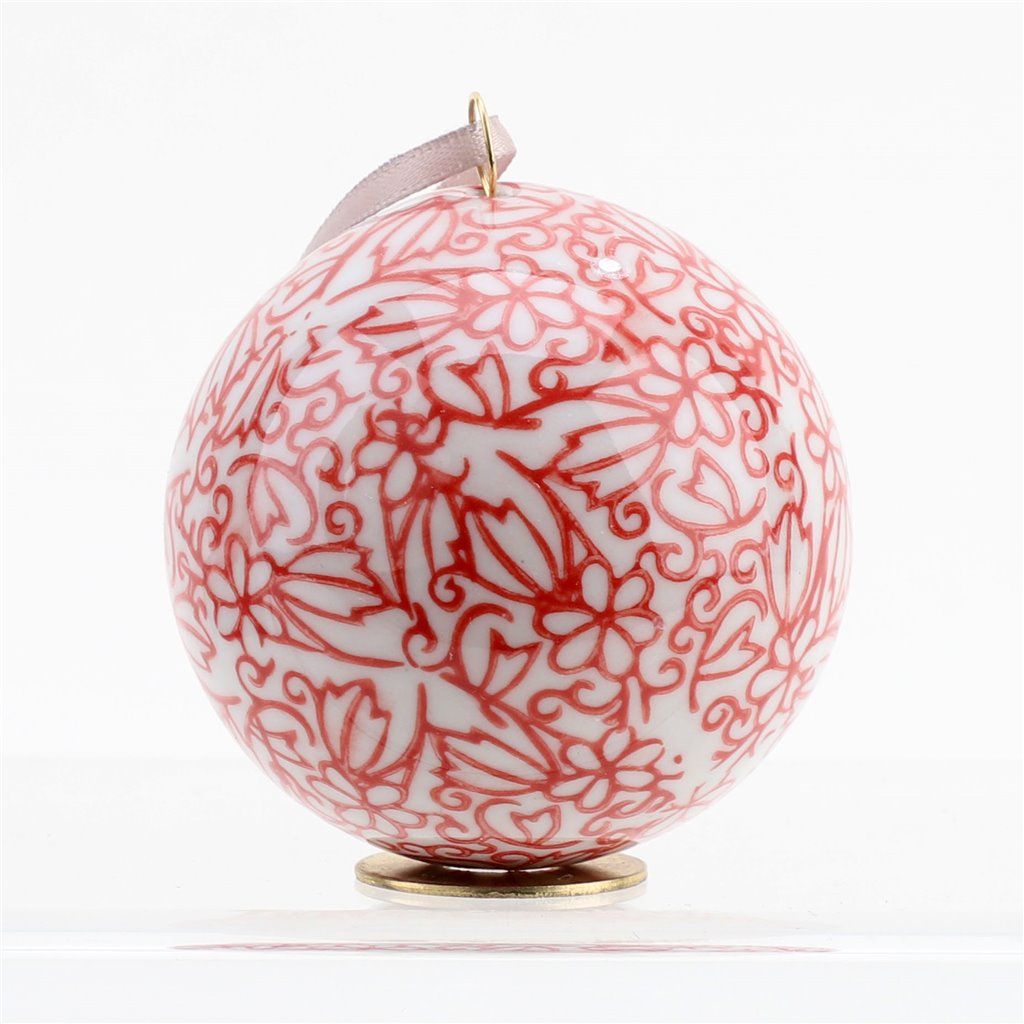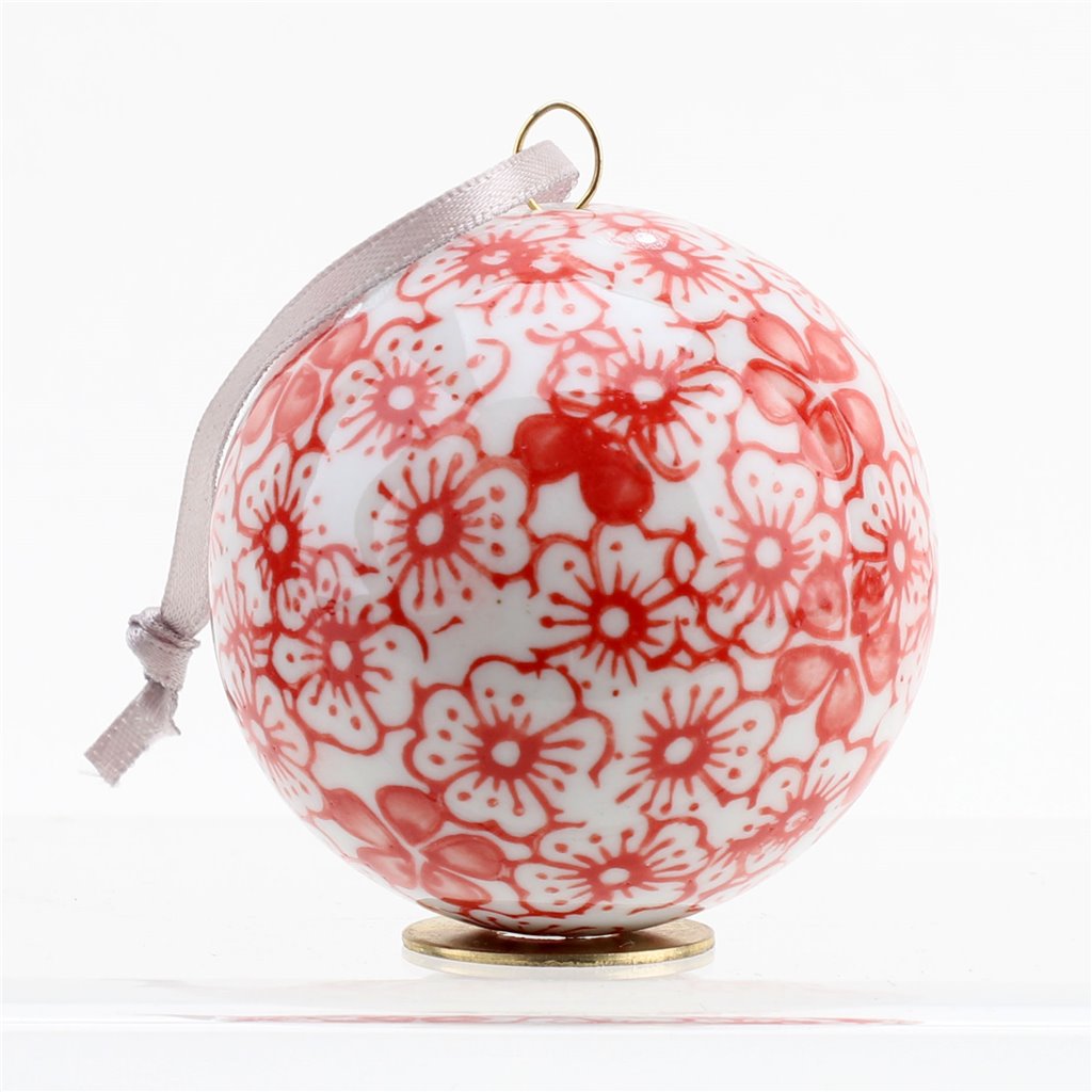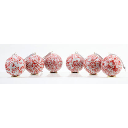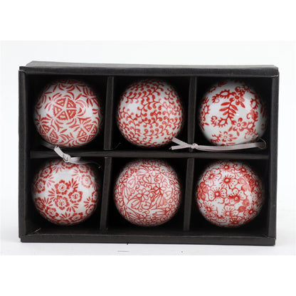 Danny’s Fine Porcelain - Set (6) Red & White Chinoiserie Porcelain Ornaments, 2.5" Wide