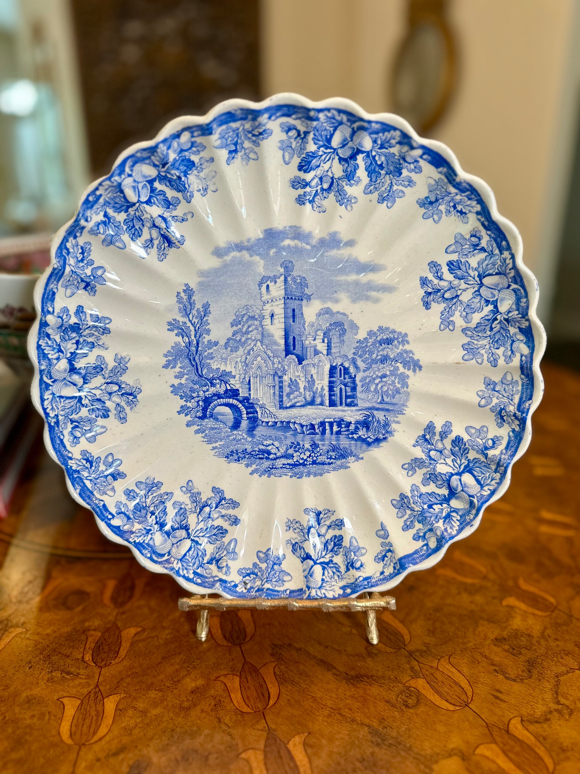 A true statement piece for a plate wall, cabinet display, or layered into a refined blue-and-white collection. For the collector who loves the Blue Room “Ruins” pattern — this is the original.