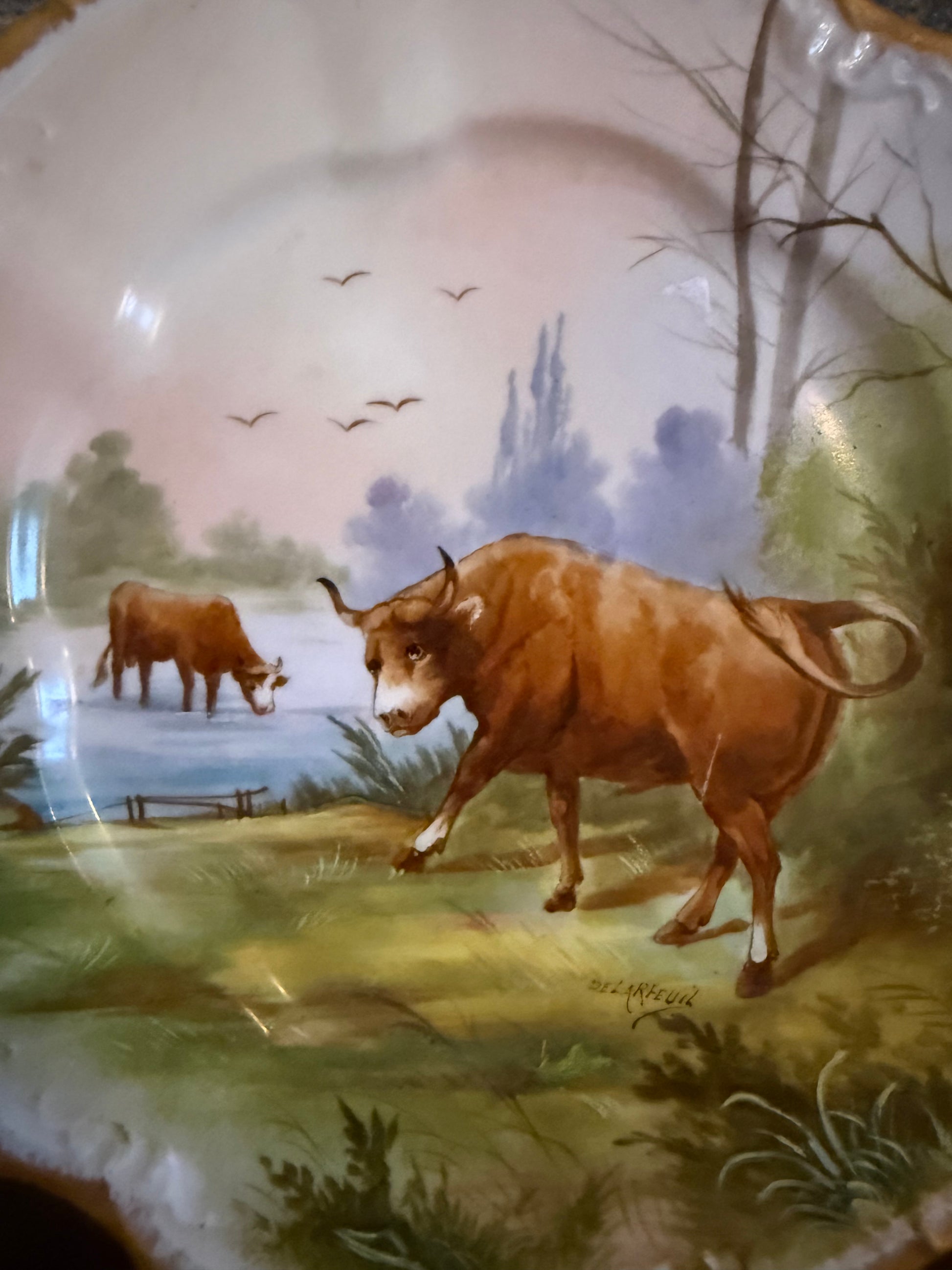 Early 1900’s French Limoges Hand Painted Charger Signed by Artist - Repaired