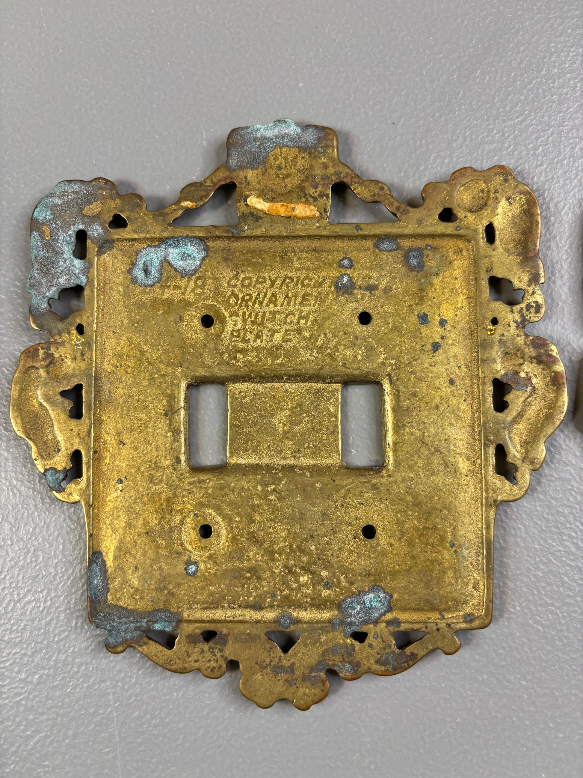Gorgeous Virginia Metalcrafters brass switch plate cover for double switch with patina!