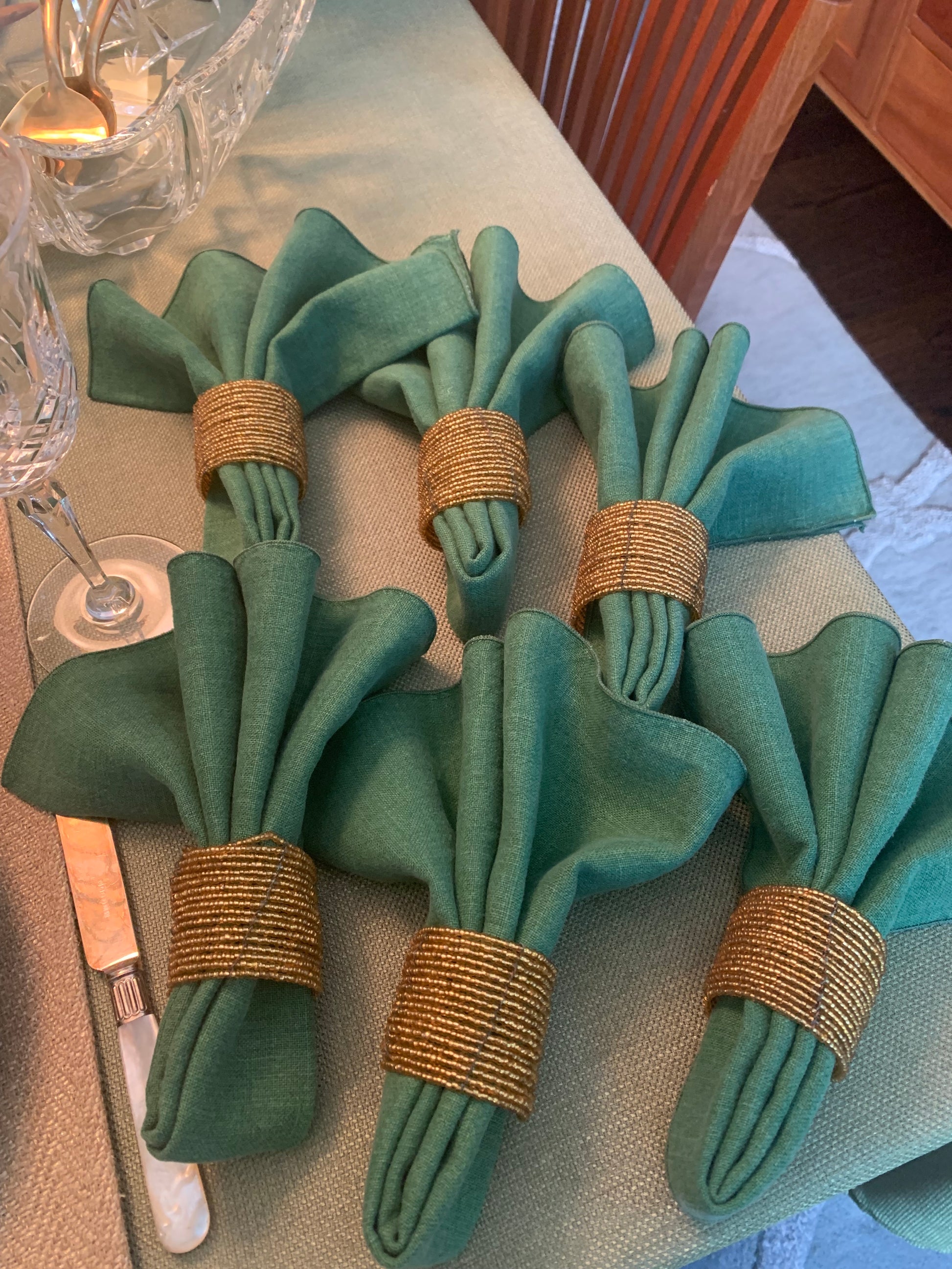 Adorn your festive table with the elegant, gold-flecked beauty of Set (6) Gold Beaded Napkin Rings. Measuring 1.75" tall and wide, these rings bring a touch of glamour to any occasion!