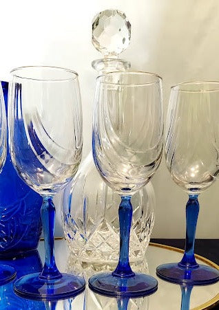 Lenox Cobalt Blue stem wine glasses, set of 4