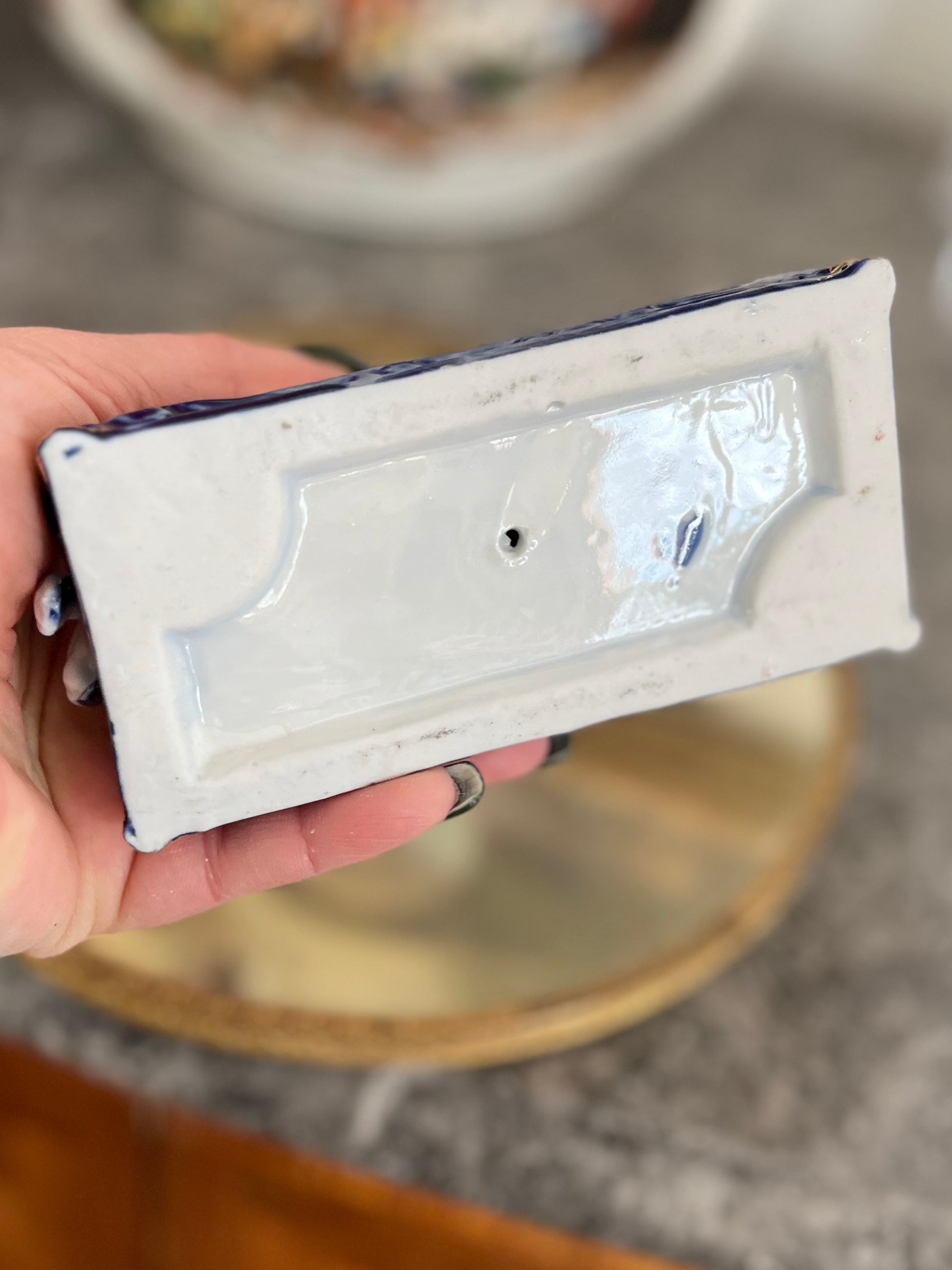 These petite figures add personality without overwhelming a vignette — lovely styled on stacked books, a console, or tucked into a cabinet among traditional blue-and-white pieces. The deep cobalt bases make them especially striking in English-leaning, chinoiserie, or collected interiors where a touch of playful elegance is welcome.