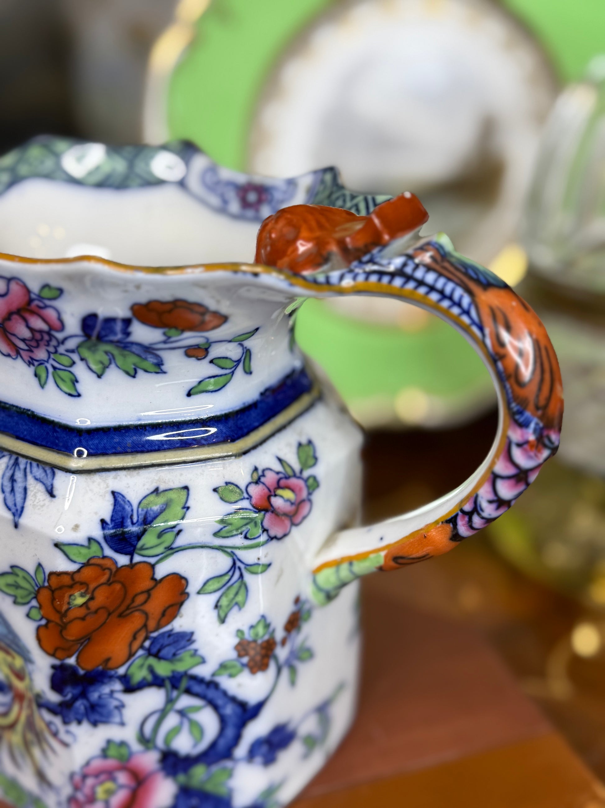 Shelley “Late Foley” Ironstone Jug, c. 1890 – Polychrome Floral with Bird Motif, Staffordshire
