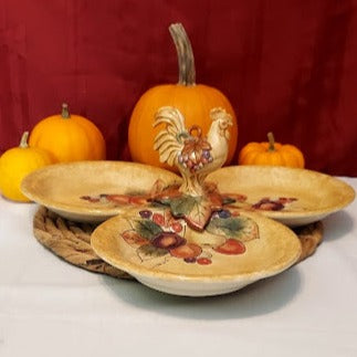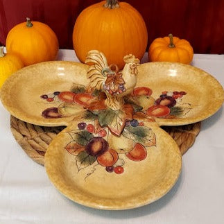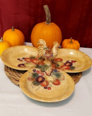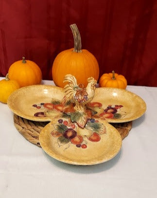 Celebrate the holidays with this unique Fitz and Floyd Rooster Relish Tray! Crafted of fine porcelain, this delightful platter features a traditional Thanksgiving-themed rooster design. Perfectly sized for serving condiments or appetizers in style, you’ll love entertaining with this beautiful accompaniment. Bring a little extra cheer to your holiday gatherings!