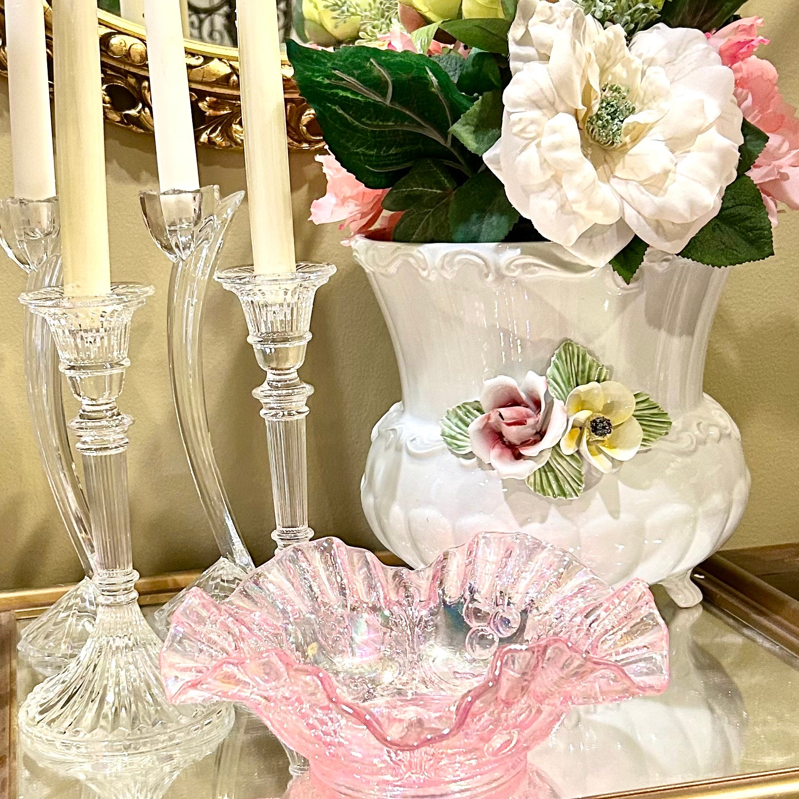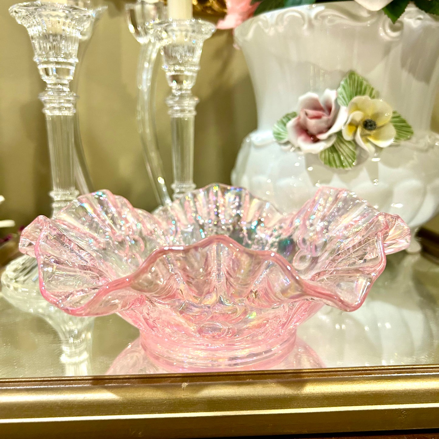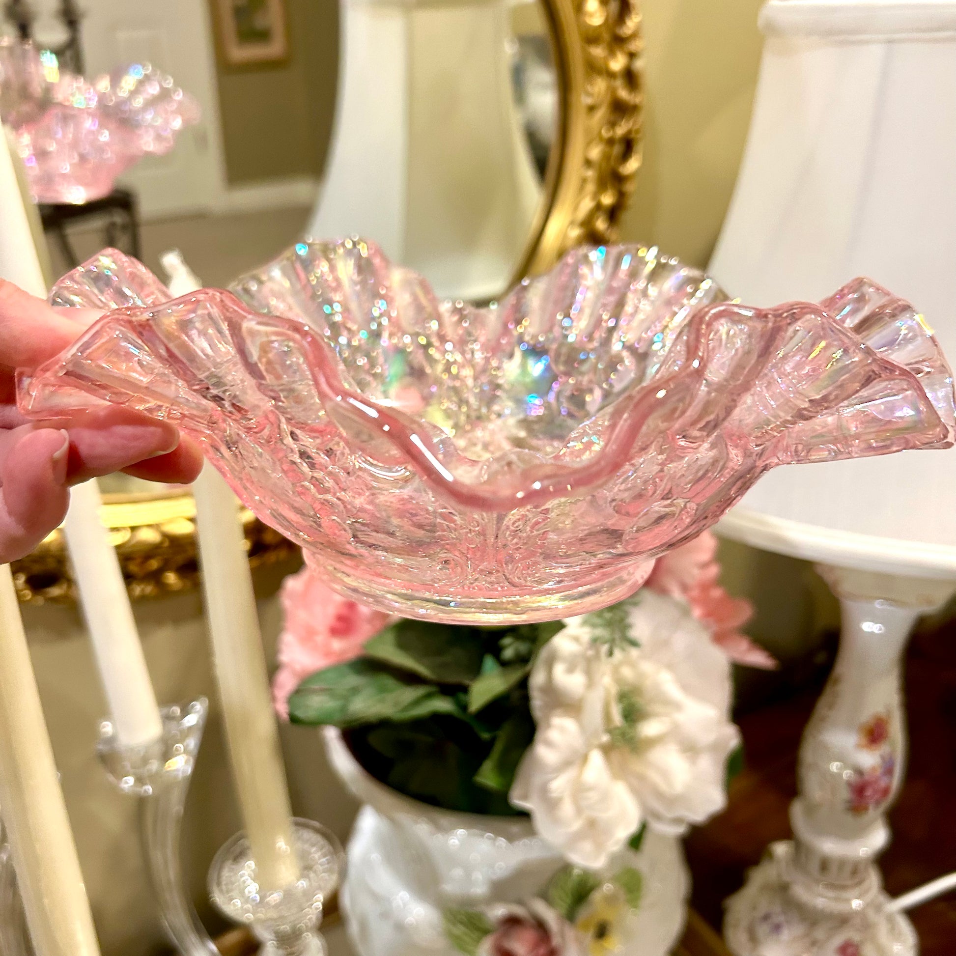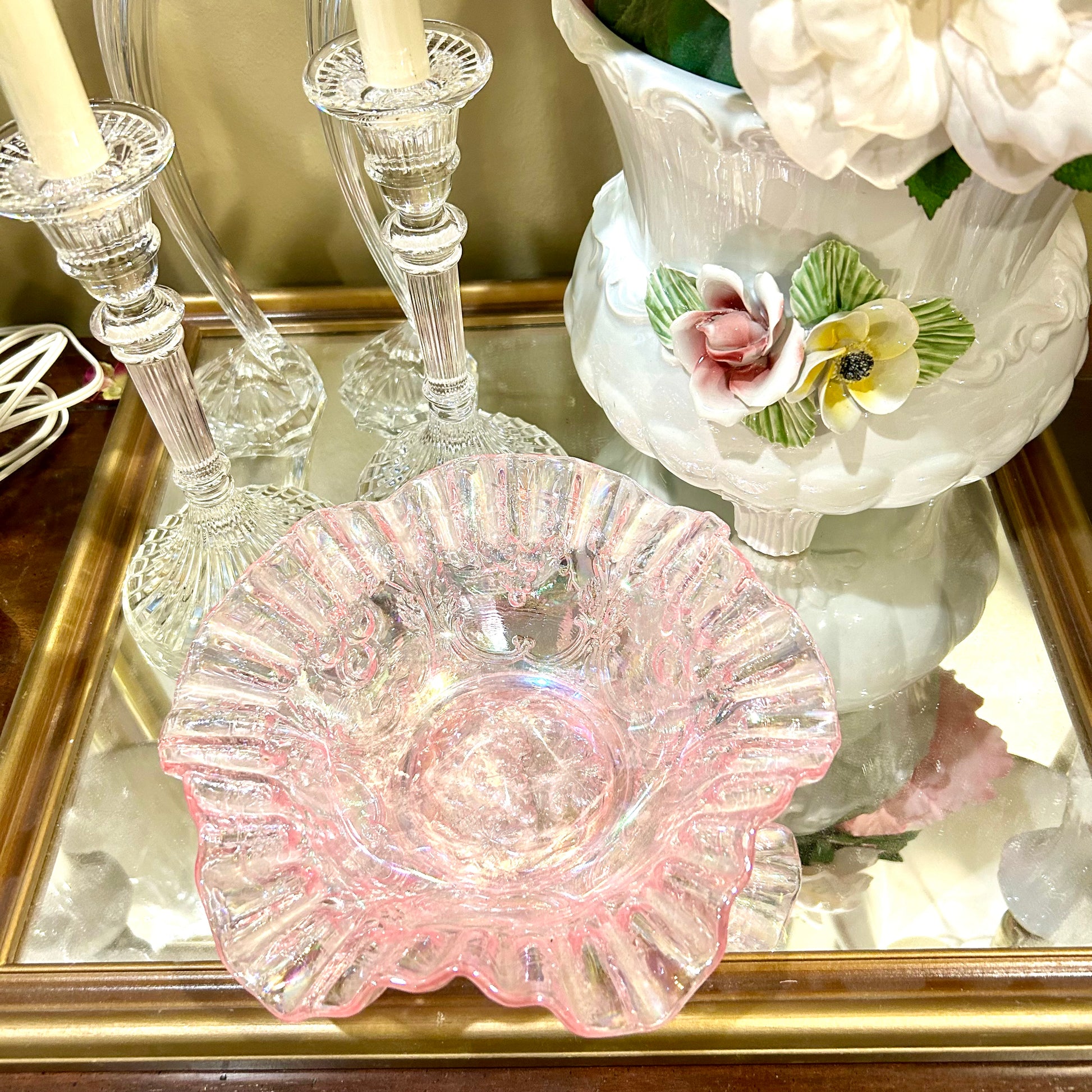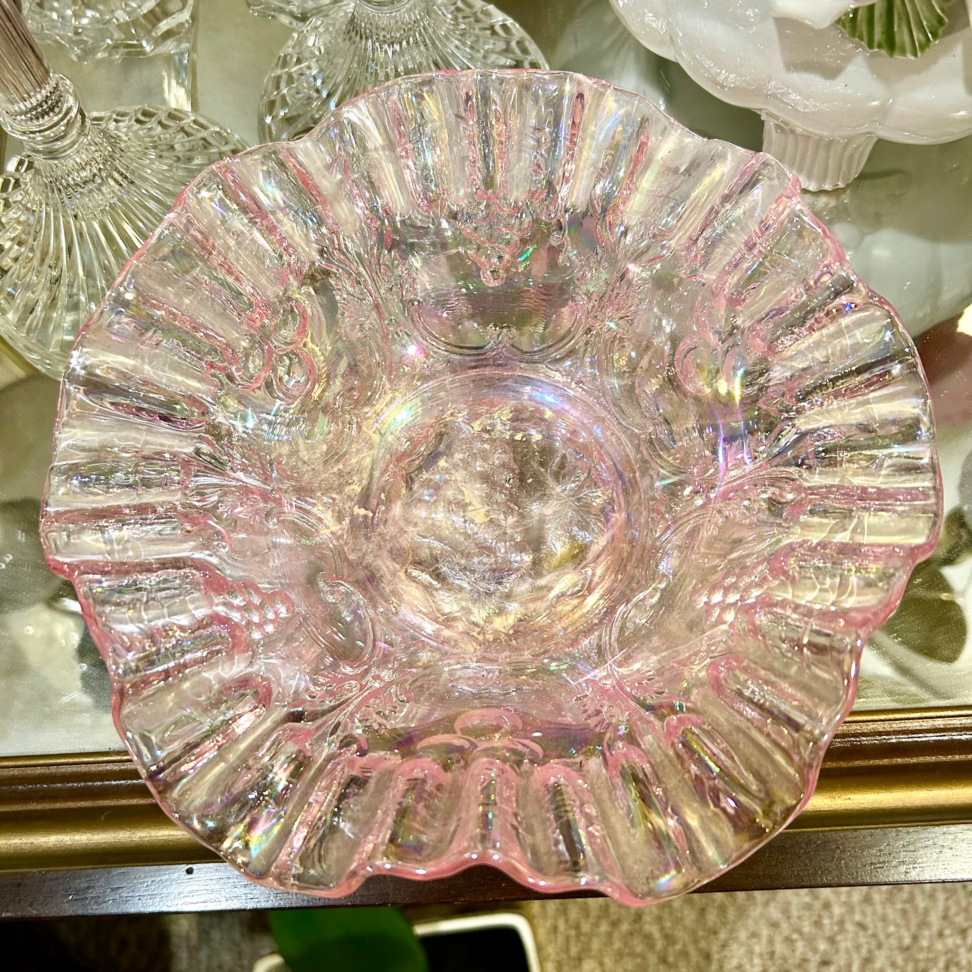 Beautiful pink glass vintage bowl centerpiece 10 d