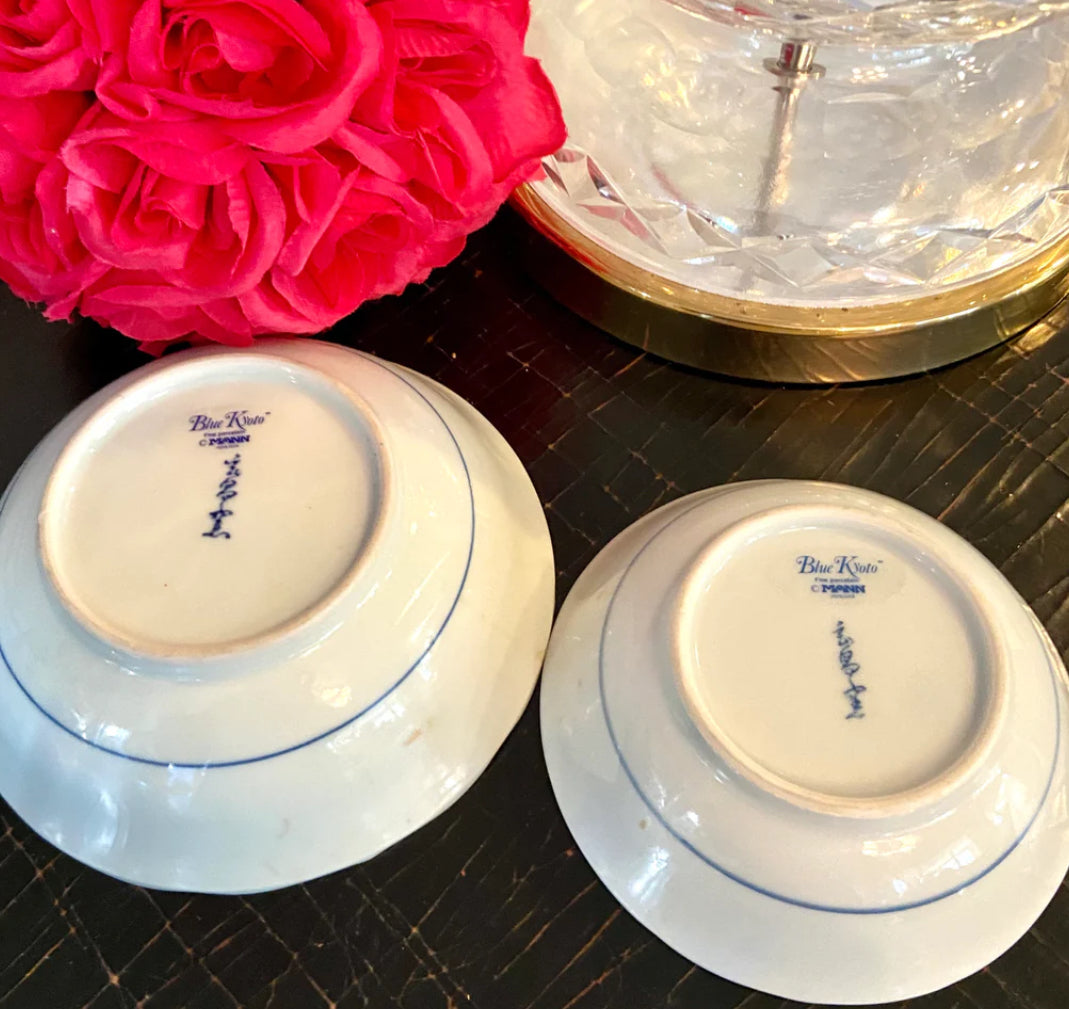Gorgeous set of 2 vintage porcelain blue and white bowls by designer Mann in Blue Kyoto design