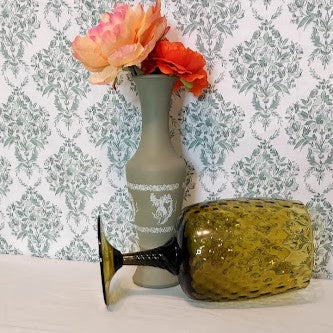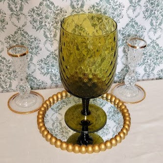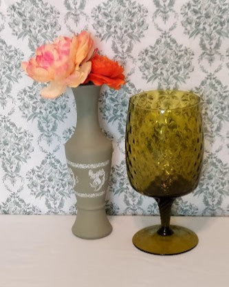 Elevate your decor with this exclusive Vintage Italian Hand Blown Rossini Glass Vase. Handcrafted in the 1960s in the Empoli region of Italy, this exquisite piece features a unique optic design and a dark olive green twisted stem and applied to the base. Perfect for elegantly arranging your long stemmed displays.
