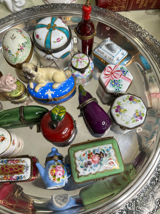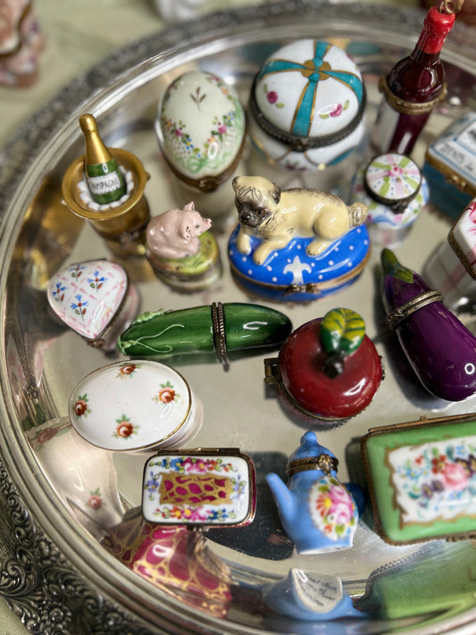 Antique French Porcelain Covered Bonbonnière with Hand-Painted Cherubs & Gilt Mounts - Signed