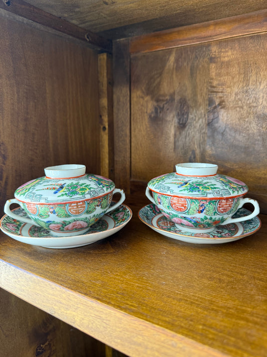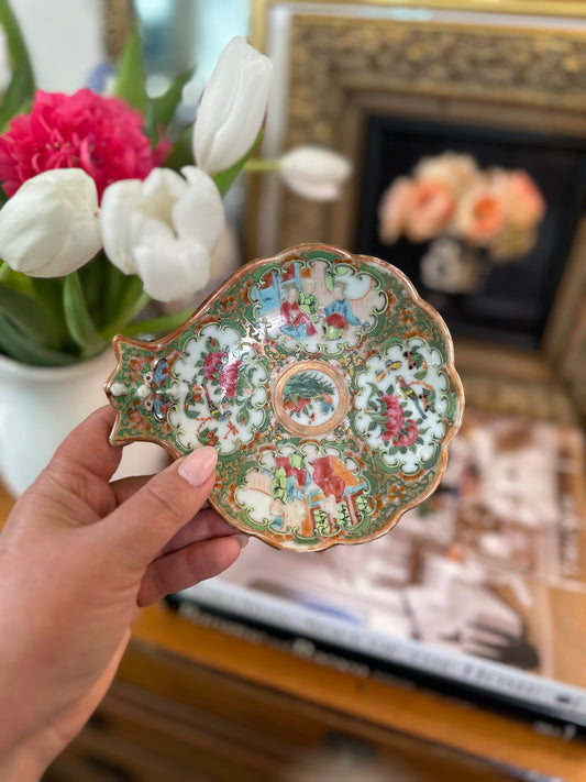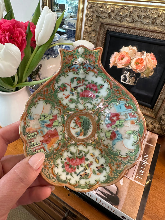 Chic antique hand painted porcelain chinoiserie lotus bowl