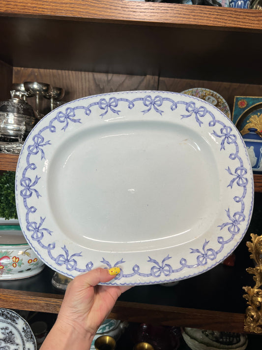 Antique British English Rockingham Brameld Castle of Rochefort pattern navy blue & white large bowl