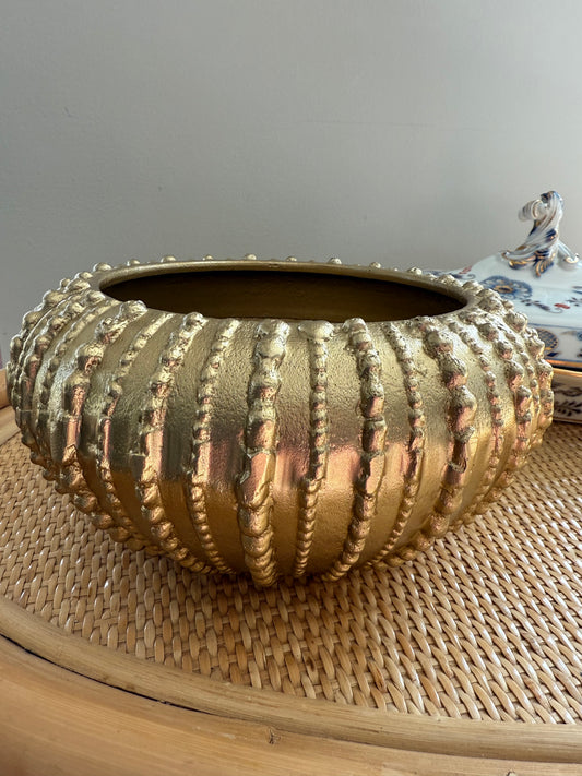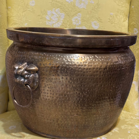 Beautiful large brass planter with grape vine motif, Lion handles, and claw feet! As is!