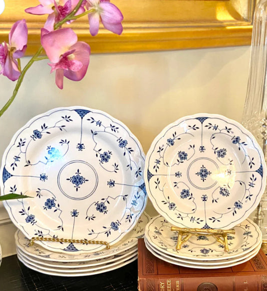 Danny's Fine Porcelain - Ceramic Bunny/Rabbit Figure Pair, Blue/White, 6x3" - Pristine!