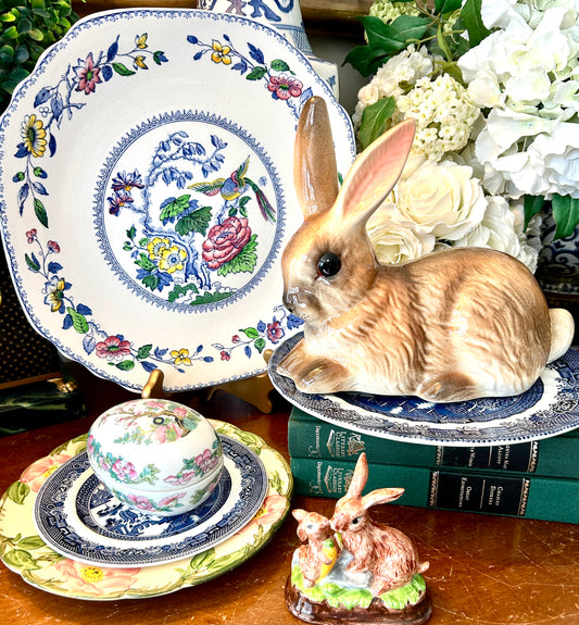 Vintage polka dot blue & white bunny rabbit springtime decor