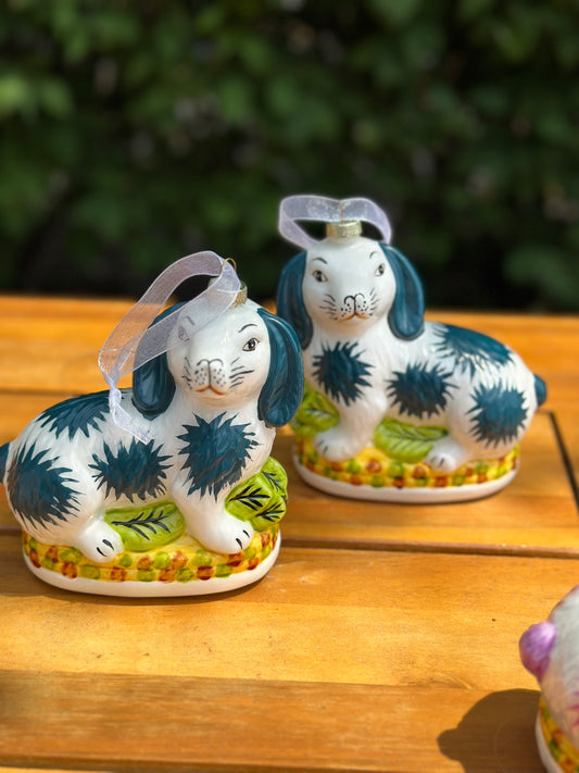 Staffy Bunny Rabbit Glass Ornament (Single) Pink & Blue - 9Lx2.5Wx4.5H