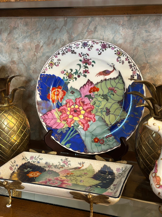 Danny's Fine Porcelain - Blue and White Pagoda, Bronze detailed platter - 13L X 8W X 1.5H