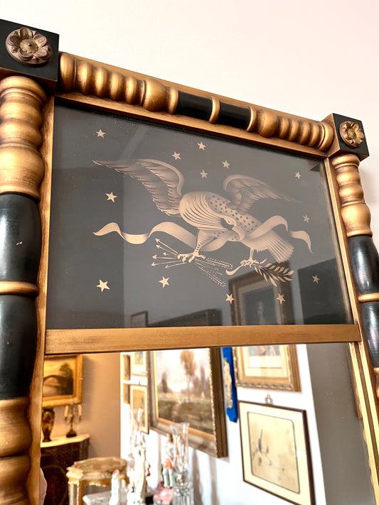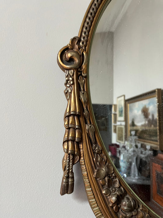 Vintage Ornate Wood Oval Eagle Mirror! 32” long, 22” wide.