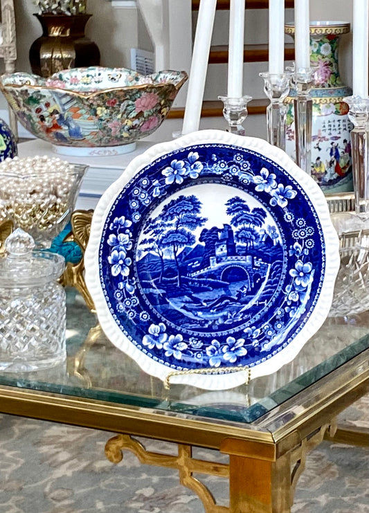 “English Scenic” Blue and white transferware plate by Adams featuring cow pasture scene!