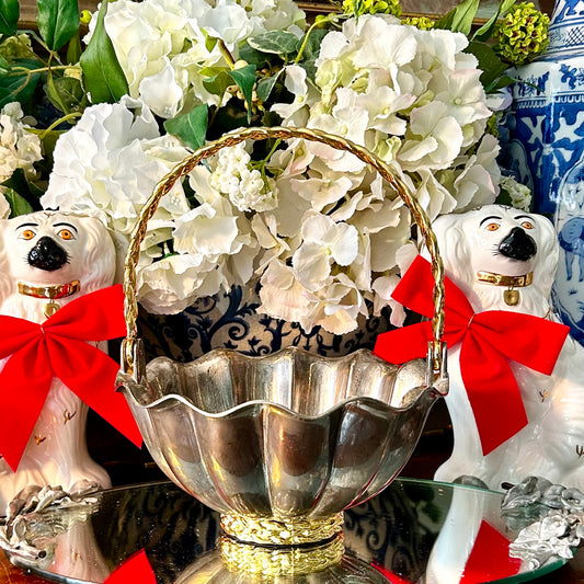 Vintage silver plated & brass basket planter by designer International Silver Co