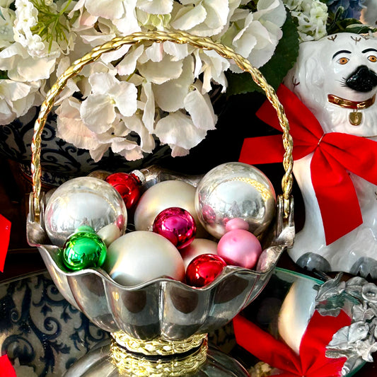 10 Glorious vintage glass ornaments shiny bright style 2.5 d red blue silver