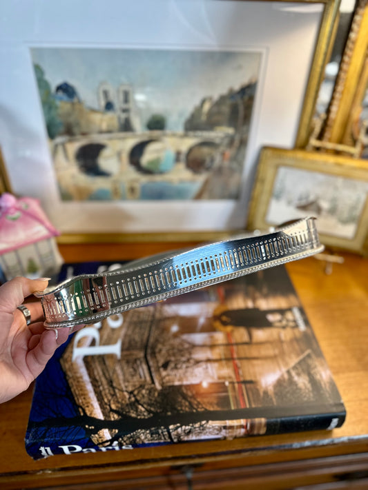 Chic and shiny vintage silver plate reticulated galler tray platter