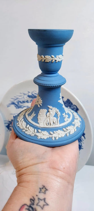 Blue and white wedgwood candle stick holder