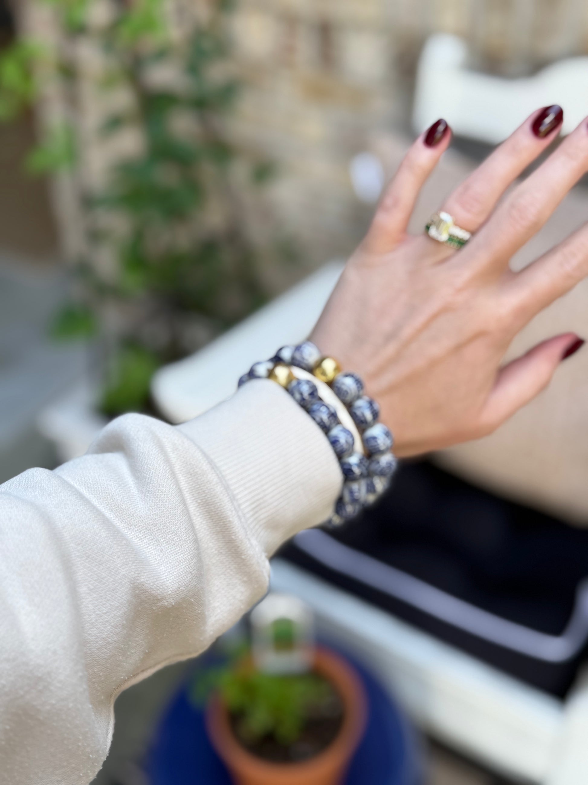 Elevate your style with this unique Blue & White Chinoiserie stretch bracelet, a timeless piece that blends elegance with everyday wearability. Each bead is hand-painted in classic blue-and-white patterns, making every bracelet a one-of-a-kind treasure.