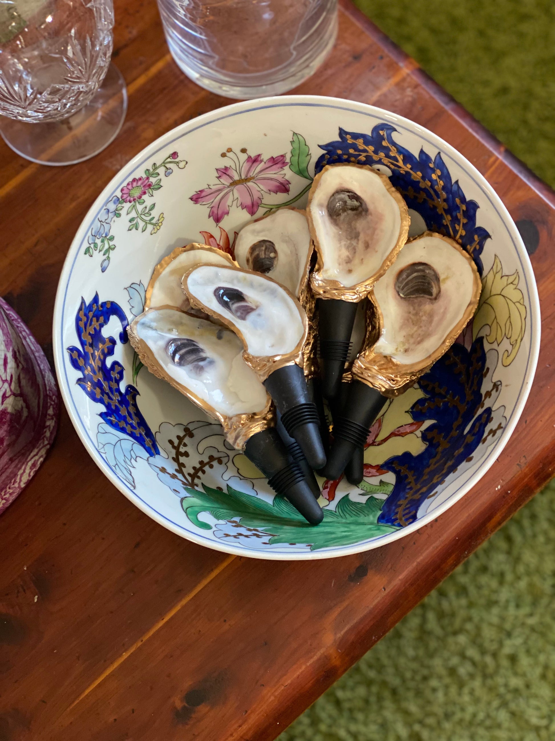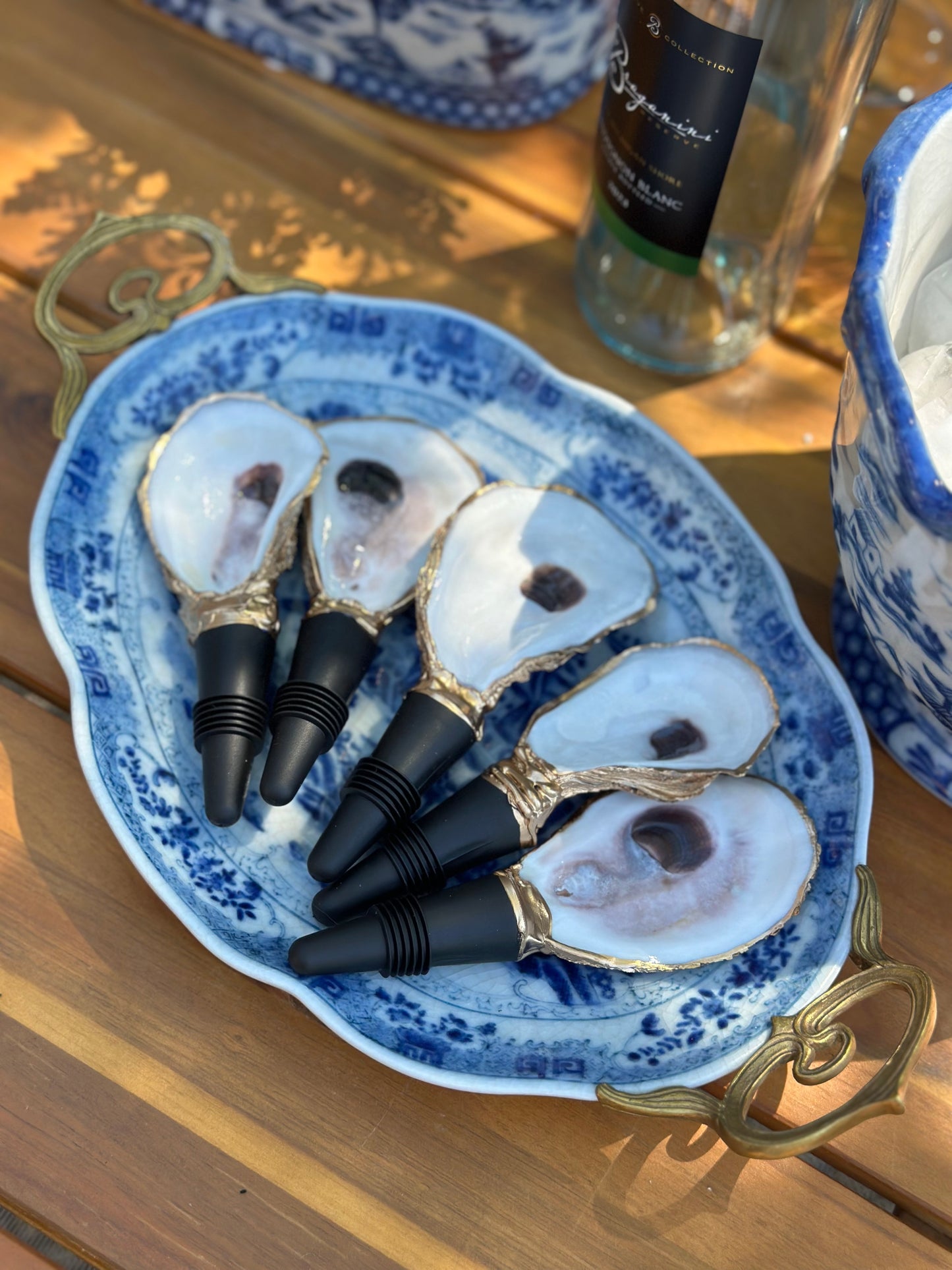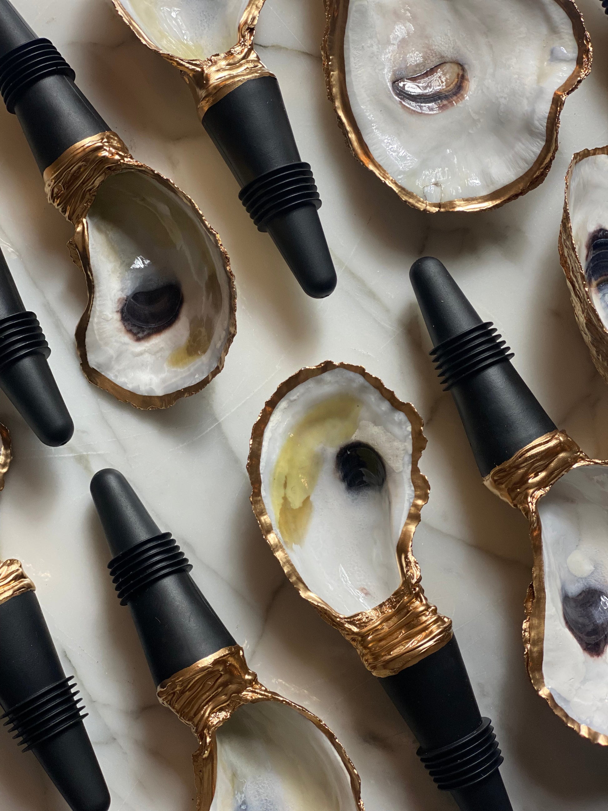 Artisan-Made, Gold Dipped Oyster Wine Stoppers, 3-4” Long