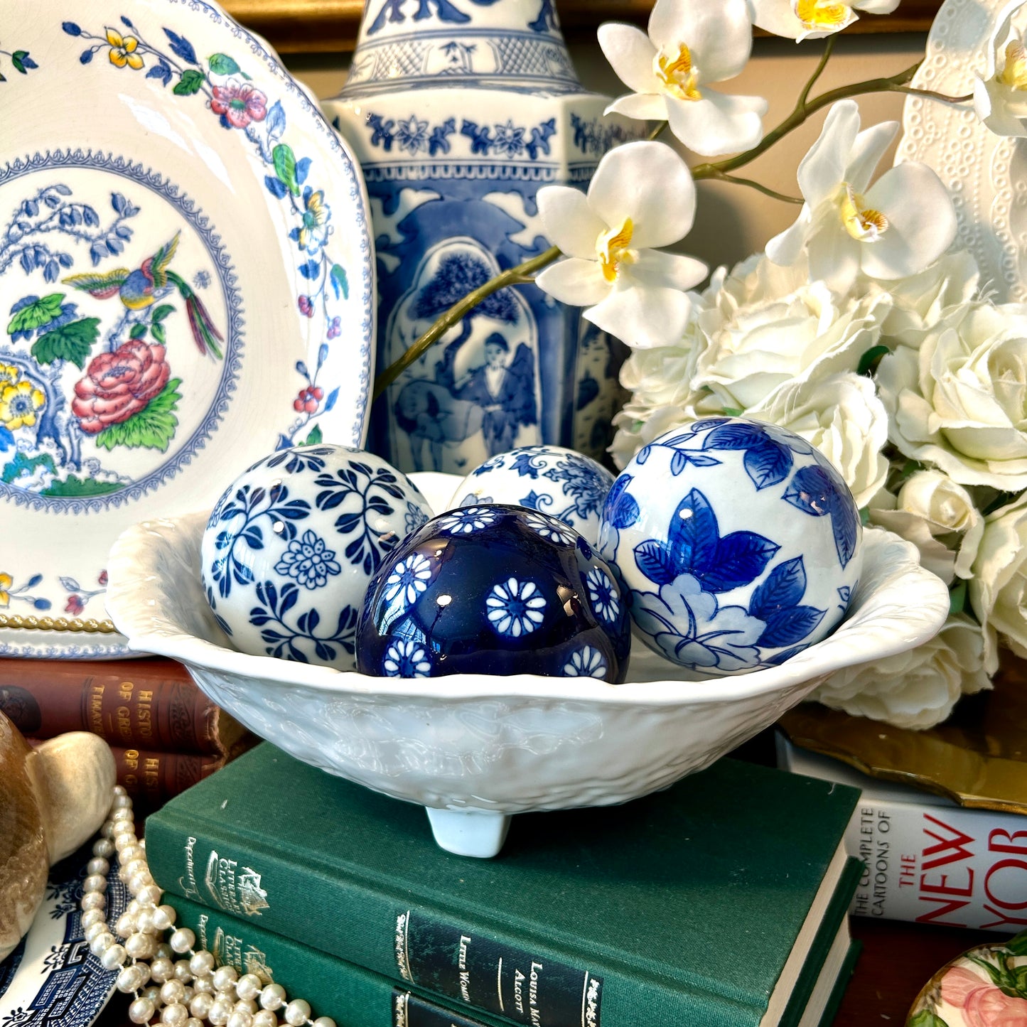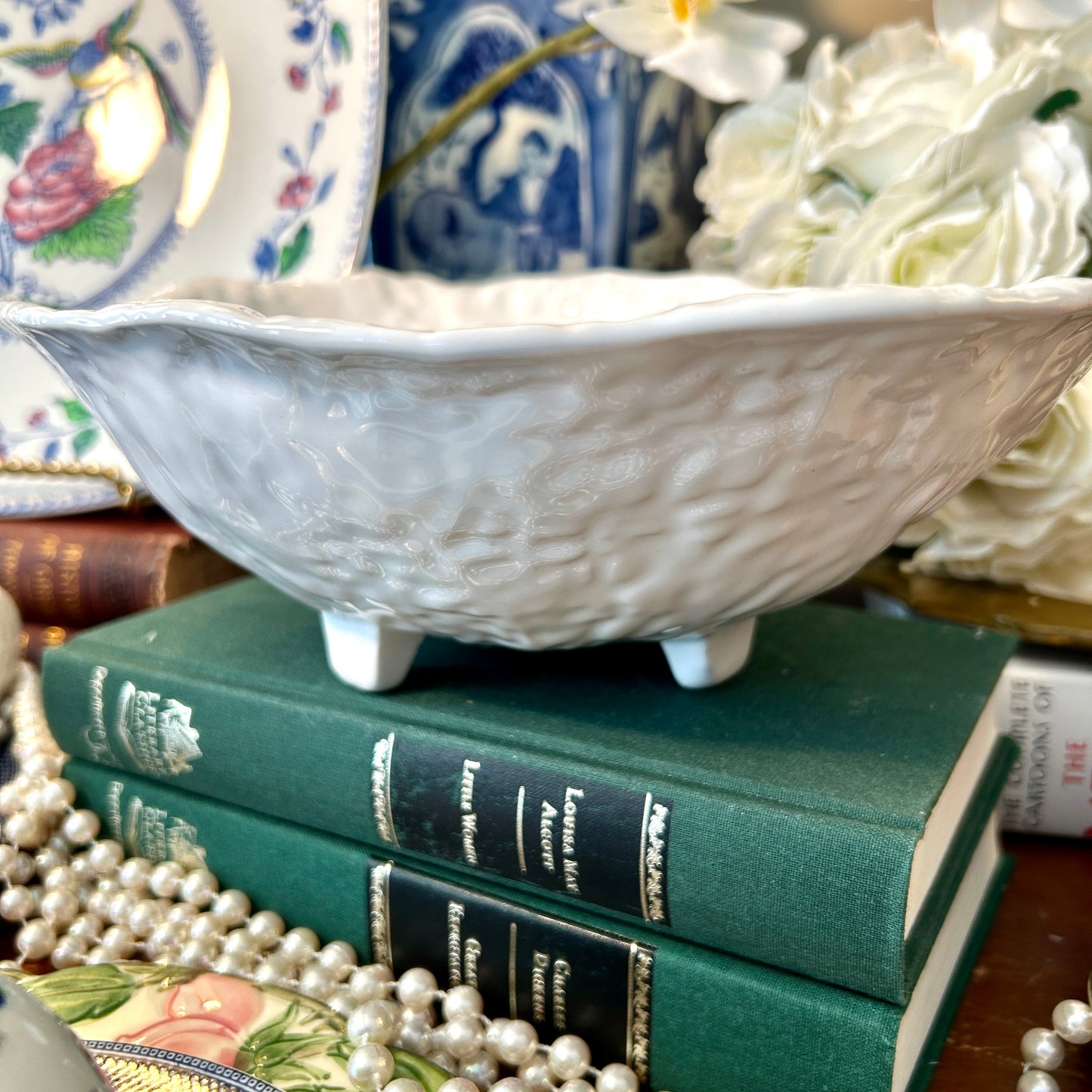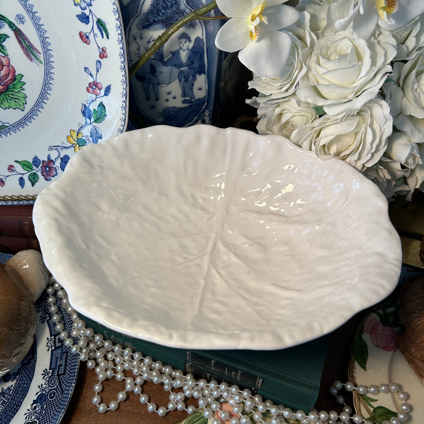 Enhance your collection and tabletop presentation with the elegant and stylish white cabbage ware footed bowl, measuring 11 x 8 x 3.5 inches.
